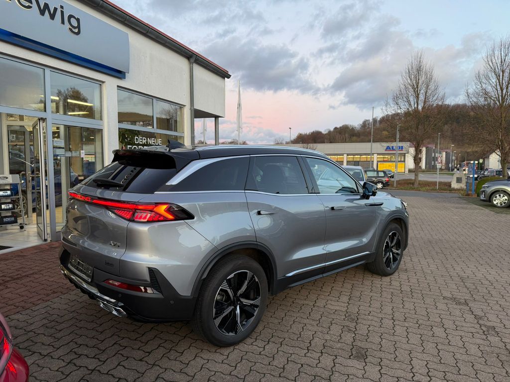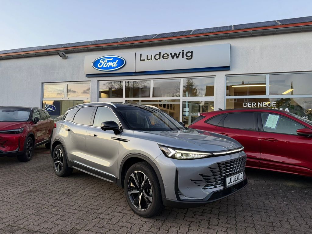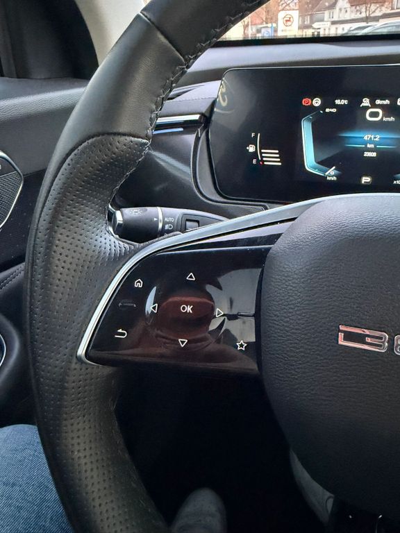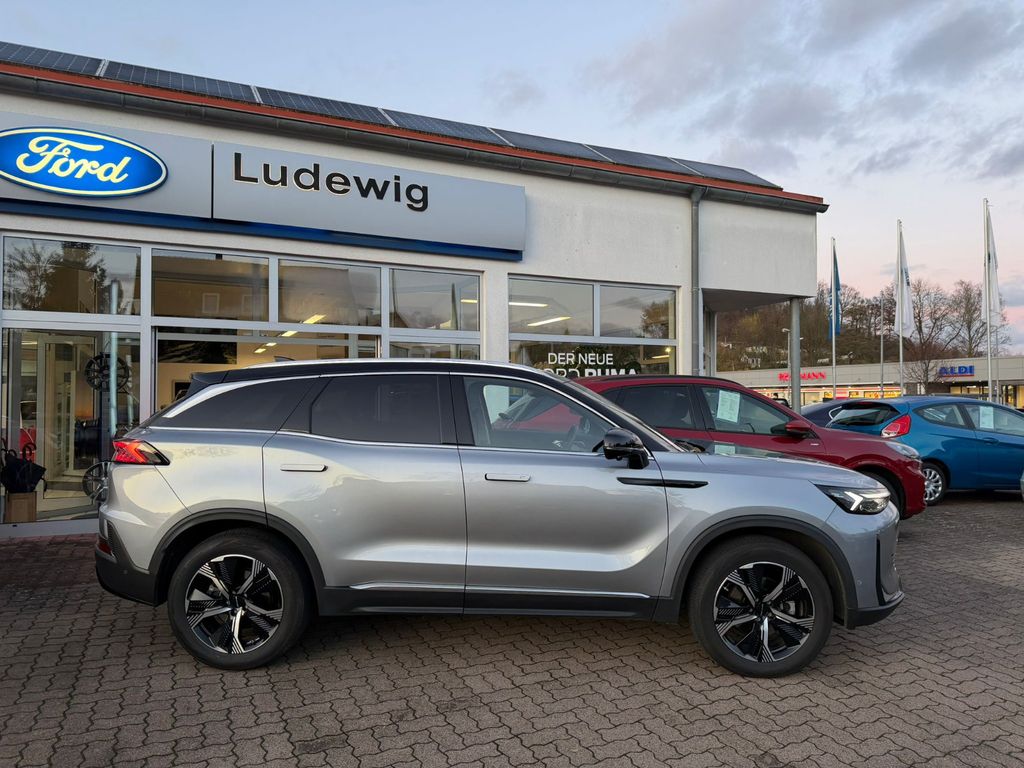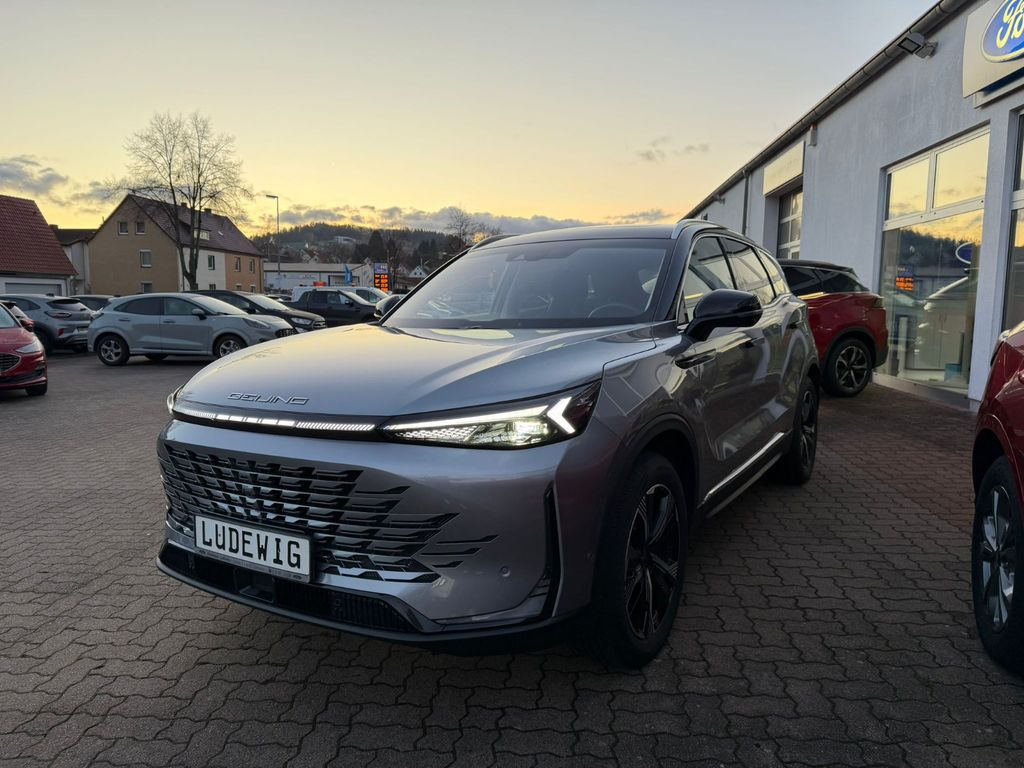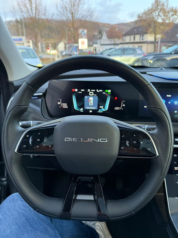 Dieser gepflegte BAIC X75 SUV aus 2024 mit nur einem Vorbesitzer präsentiert sich in elegantem Silber-Metallic mit schwarzer Lederausstattung. Der 1.5-Liter-Benzinmotor mit 177 PS bietet dank Frontantrieb und Automatikgetriebe ein komfortables Fahrerlebnis. Das Fahrzeug verfügt über ein vollständiges Serviceheft und eine gültige Garantie. Die umfangreiche Sicherheitsausstattung umfasst Front- und Seitenairbags, ESP, ABS, Spurhalteassistent und Kollisionsvermeidungssystem. Für maximalen Komfort sorgen die elektrisch verstellbaren und beheizbaren Sitze mit Massagefunktion, Lenkradheizung und die Zwei-Zonen-Klimaautomatik. Das Panorama-Glasdach und die Ambientbeleuchtung schaffen eine angenehme Atmosphäre.- Modernes Infotainmentsystem mit Touchscreen, Apple CarPlay, Android Auto und DAB-Radio