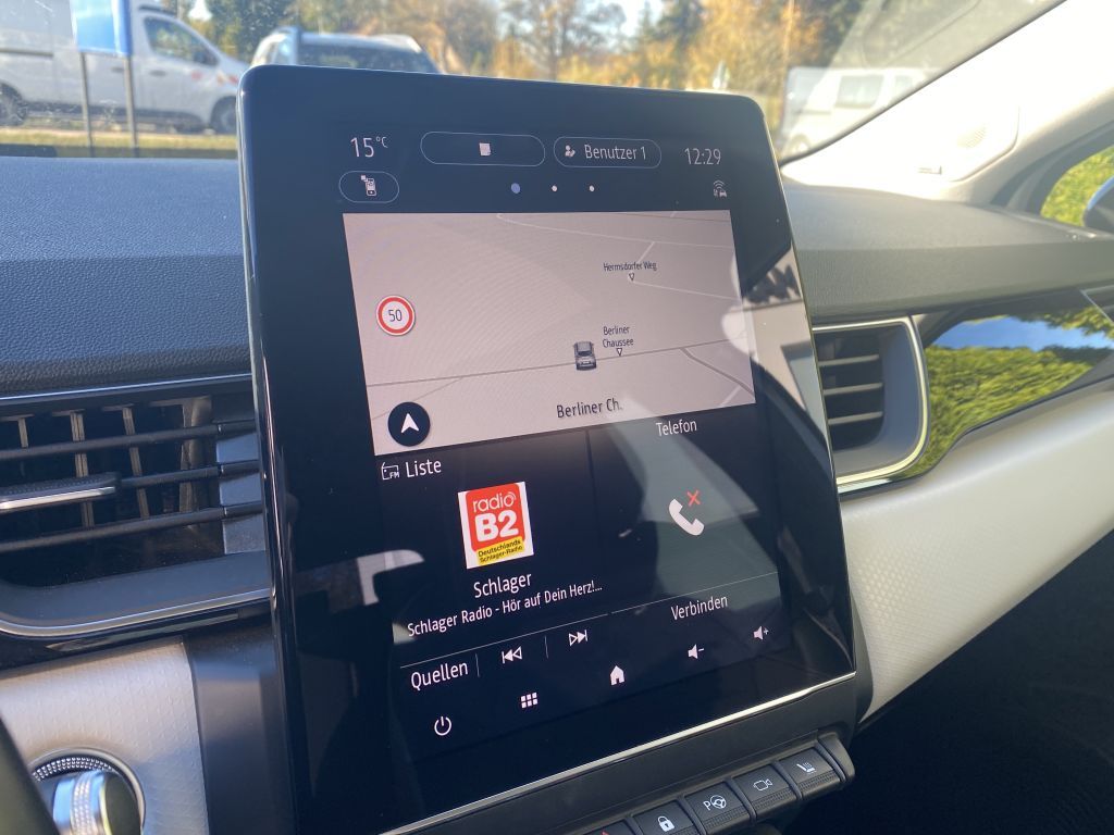 - Autobahn- und Stauassistent (0-160 km/h) Auf einer Autobahn oder einer mehrspurigen Strasse mit Fahrbahnmarkierungen kann der Neue Captur komplett übernehmen, beschleunigen, bremsen und dem vorausfahrenden Fahrzeug folgen. Nimmt der Fahrer die Hand vom Lenkrad, so alarmiert ihn das System nach 13 Sekunden.
