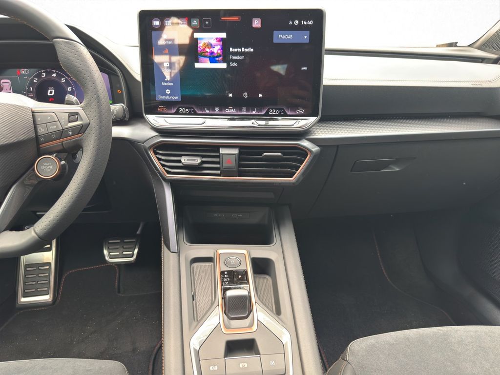 Anhängerkupplung (Kugelkopf mit elektr. Entriegelung. schwenkbar), LM-Felgen 8x19 (Hailstorm. schwarz / Copper. glanzgedreht / geschmiedet), Pedale Dark Aluminium-Design, Seitenairbag hinten, Knieairbag Fahrerseite, Skyline-Paket, Panorama Schiebe-/Hebedach elektrisch, Sonderlackierung Matt, 6 Lautsprecher, Abdeckkappen Außenspiegel Schwarz, Airbag Beifahrerseite abschaltbar, Airbag Fahrer-/Beifahrerseite, Antriebsart: Allradantrieb, Außenspiegel elektr. verstell-. heiz- und anklappbar mit Spiegelabsenkung und Welcome Light, Connectivity-Box, Dachhimmel schwarz, Dachreling schwarz. hochglänzend, Design-Paket Dynamic, Außenspiegel elektr. verstell-. heiz- und anklappbar. Spiegelabsenkung. Welcome Light. Memory, Lendenwirbelstütze Sitz vorn links. elektr. verstellbar, Sitz vorn links elektr. verstellbar (mit Memory), Sitzbezug / Polsterung: Stoff Dinamica / Kunstleder schwarz mit blauen Akzenten, Sitzheizung vorn, Sport-Schalensitze vorn mit integrierten Kopfstützen, Winter-Paket, Differentialsperre (Vorderachse), Edge Paket mit Safesicherung, Ambiente-Beleuchtung LED, Ambiente-Beleuchtung Smart Ambient Light, Diebstahl-Warnanlage mit Innenraumüberwachung und Abschleppschutz, Heckklappe/-Deckel elektr. betätigt (öffnen + schliessen. sensorgesteuert), Rückfahrkamera, Schließ-/Startsystem Kessy Advanced mit Safesicherung, Einparkhilfe vorn und hinten, Einstiegsleisten vorn beleuchtet, Elektron. Differentialsperre (XDS), Fahrassistenz-System: Adaptive Fahrwerksregelung (DCC), Fahrassistenz-System: Autom. Distanzregelung (ACC / PCC) mit vorausschauender Geschw.-Regelung, Fahrassistenz-System: Fahrprofilauswahl (CUPRA Drive Profile), Fahrassistenz-System: Fernlichtassistent, Fahrassistenz-System: Müdigkeitserkennung, Fahrassistenz-System: Pre-Crash-System, Fahrassistenz-System: Spurhalteassistent, Fahrassistenz-System: Umfeldbeobachtungssystem (Front assist) mit City-Notbremsfunktion, Fahrassistenz-System: Verkehrszeichenerkennung, Fensterheber elektrisch vorn + hinten mit Komfortschaltung, Fensterzierleisten schwarz, Full Link (MirrorLink. Apple CarPlay und Android Auto), Gepäck-/Laderaumboden doppelt, Gepäckraumabdeckung / Rollo, Gepäckraumbeleuchtung (LED), Getriebe 7-Gang - Doppelkupplungsgetriebe DSG, Handschuhfach mit LED-Beleuchtung, Innenausstattung: Interieurleisten Copper, Isofix-Aufnahmen für Kindersitz an Beifahrersitz und Rücksitz (inkl. i-Size-Kindersitze), Karosserie: 5-türig, Klimaanlage Climatronic 3-Zonen, Kombiinstrument digital (virtual cockpit), Kopf-Airbag-System, Kopfstützen hinten (3-fach), Ladekabel mit Schukostecker, Lendenwirbelstütze Sitz vorn links. verstellbar, Lendenwirbelstütze Sitz vorn