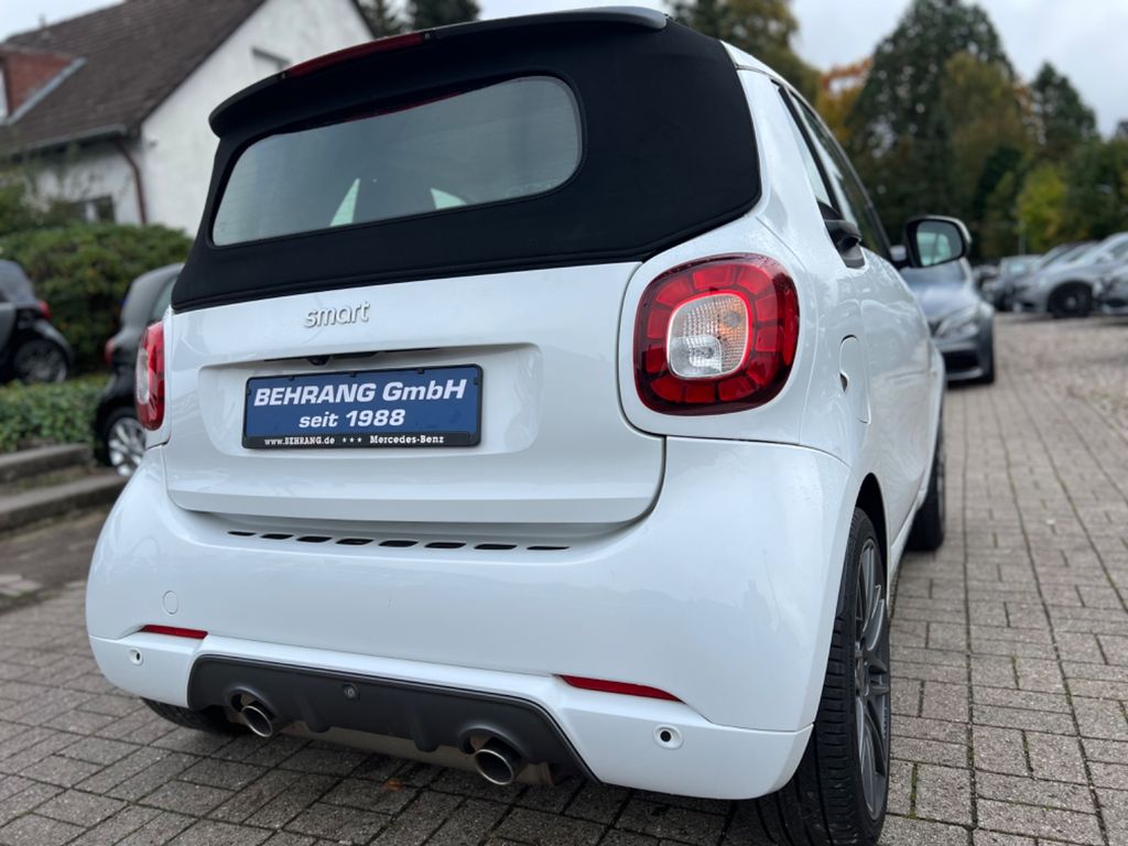 Ablage-Paket, Ambiente-Beleuchtung, Bodypanel Kristall-Weiß / Crystal White (Farbcode EAZO), Cool & Media-Paket, Erste Hilfe-Kasten / Verbandkasten, Fahrassistenz-System: aktiver Bremsassistent, Komfort-Paket, Kraftstofftank: vergrößert, Kühlermaske weiß, Laderaumabdeckung, LED & Sensor-Paket, Mittelarmlehne vorn klappbar, Reifen-Reparaturkit (Kompressor), Rückfahrkamera, Tridion-Sicherheitszelle Weiß (Farbcode), Warndreieck, Airbag Fahrer-/Beifahrerseite, Außenspiegel schwarz, Außentemperaturanzeige, Blinkleuchten seitlich Weiß, Bordcomputer, Design- und Ausstattungslinie Brabus style, Direktlenkung mit variabler Lenkkraft-Unterstützung, Fahrassistenz-System: Berganfahr-Assistent, Fensterheber elektr. vorn, mit Einklemmschutz, Getriebe 6-Gang - Doppelkupplungsgetriebe DCT, Isofix-Aufnahmen für Kindersitz, Karosserie: 2-türig, Knieairbag Fahrerseite, Kombiinstrument mit Monochrom-Display, Kopf-Airbag-System / Seitenairbag, Motor 0,9 Ltr. - 66 kW Turbo KAT, Reifendruck-Kontrollsystem, Schadstoffarm nach Abgasnorm Euro 6, Sitzlehne vorn rechts umklappbar, Sonnenblende links mit Spiegel, Sonnenblende rechts mit Spiegel, Start/Stop-Anlage, Steckdose (12V-Anschluß), Tritop Verdeck, Verzurrösen Koffer-/Laderaum