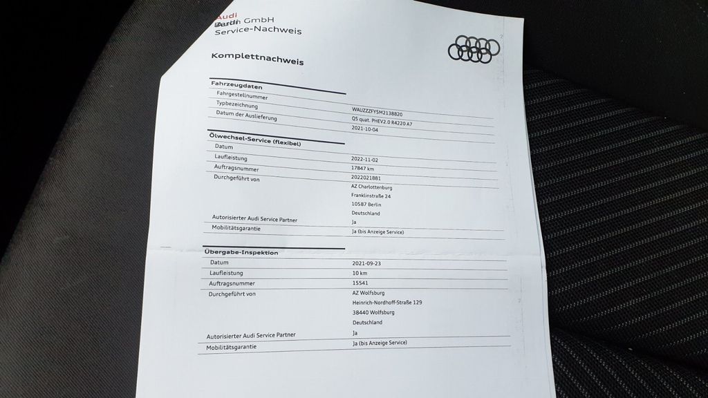Hybrid 220 kW (Motor 2,0 Ltr. - 195 kW TFSI WAUZZZFY5M2138820