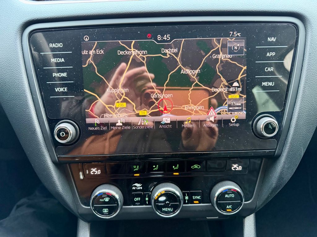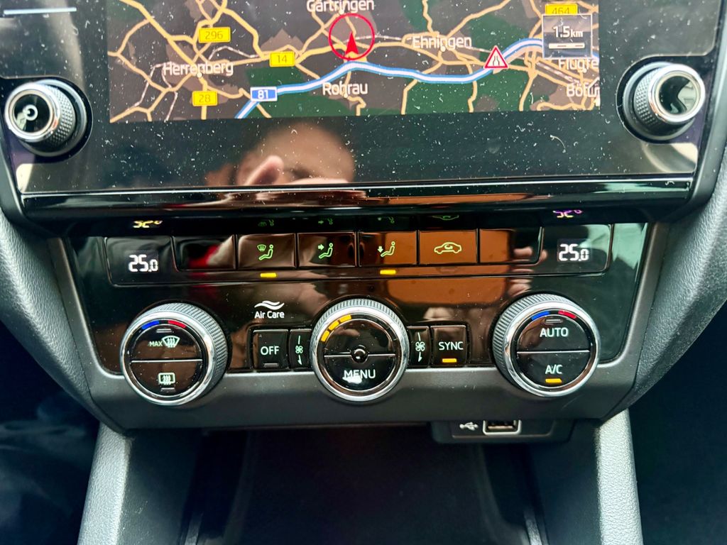 Einparkhilfe vorn und hinten, Klimaanlage Climatronic 2-Zonen, Metallic-Lackierung, Mittelarmlehne hinten, Rückfahrkamera, Seitenscheiben hinten und Heckscheibe abgedunkelt (SunSet), SmartLink (MirrorLink, Apple CarPlay und Android Auto)