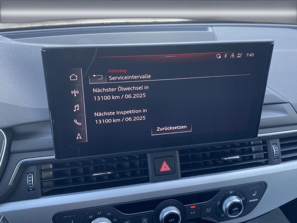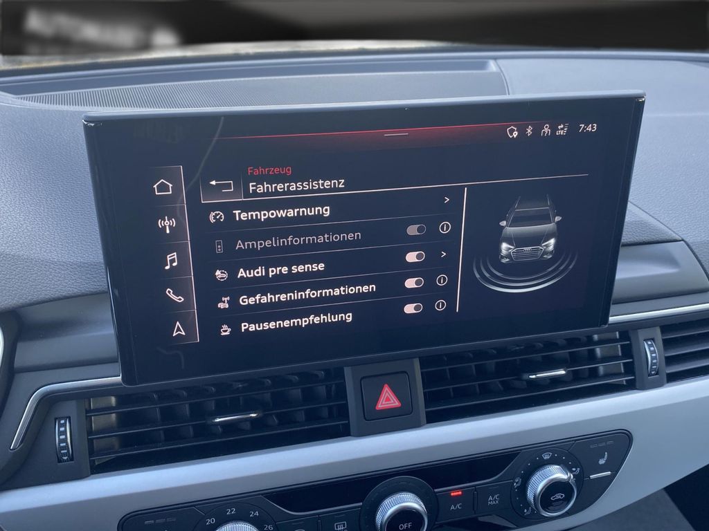 Airbag Beifahrerseite abschaltbar, Audi connect (Notruf- und Assistance-System), Audi Drive Select, Außenspiegel elektr. verstell- und heizbar, Außenspiegel Wagenfarbe, Blinkleuchten LED in Außenspiegel integriert, Dachreling schwarz, Einstiegsleisten mit Aluminiumeinlage, Fahrassistenz-System: City-Notbremsfunktion (Audi pre sense City), Fensterzierleisten schwarz, Frontscheibe Akustikglas, Funkschlüssel, Fußmatten Velours, Geschwindigkeits-Begrenzeranlage, Heckleuchten LED, Innenausstattung: Dekoreinlagen Akzentteile in der Armaturentafel schwarz matt, Innenausstattung: Dekoreinlagen Diamantlack silbergrau, Isofix-Aufnahmen für Kindersitz, Karosserie: 4-türig, Klimaautomatik, Kopf-Airbag-System (Sideguard), Leichtlaufreifen, Modellpflege, Multi-Media-Interface MMI Basic Plus / MMI Radio Plus, Nichtraucher-Paket, Radioempfang digital (DAB), Reifen-Reparaturkit, Reifendruck-Kontrollsystem, Rücksitzlehne geteilt/klappbar (40:20:40), Schadstoffarm nach Abgasnorm Euro 6d-TEMP, Scheibenwaschdüsen heizbar, Scheinwerfer Basis (LED - Technologie), SCR-System (AdBlue-Technologie), Seitenairbag vorn, Sitzbezug / Polsterung: Stoff Index, Sitze vorn manuell einstellbar, Standard-Fahrwerk, Start/Stop-Anlage, Stoßfänger Ausführung: advanced, Uni-Lackierung, Universal-Schnittstelle Bluetooth, Wendeladeboden