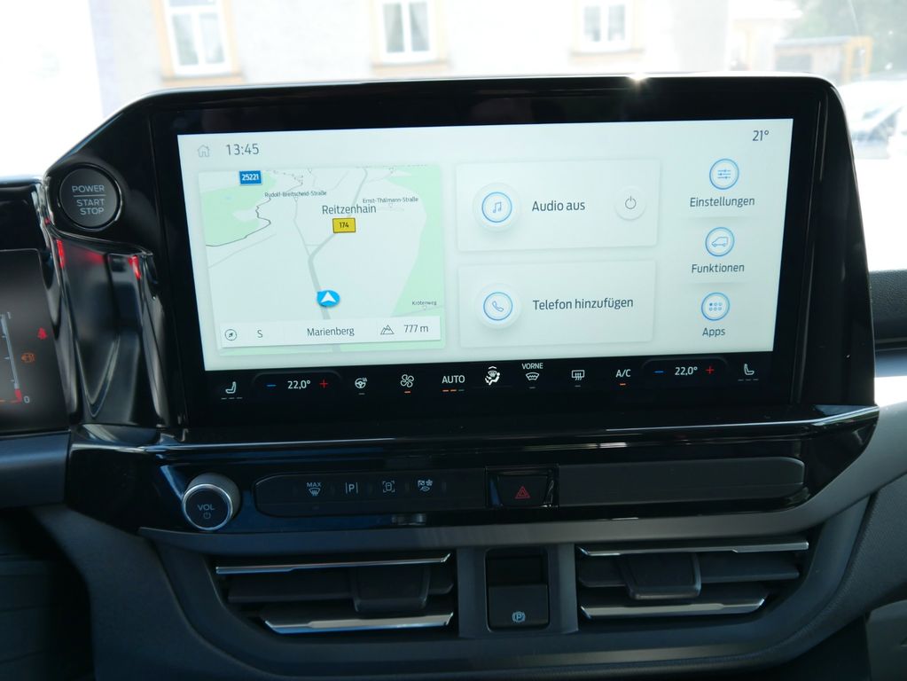 Audio und Kommunikation: Ford-SYNC4-Navigationssystem mit Touchscreen und DAB, SYNC Notrufassistent, Mobiltelefonvorbereitung Bluetooth, USB-Eingang, Radiofernbedienung am Lenkrad, Sprachsteuerung, Unterstützung von Android Auto und Apple CarPlay, Ladestation induktiv in der Mittelkonsole,