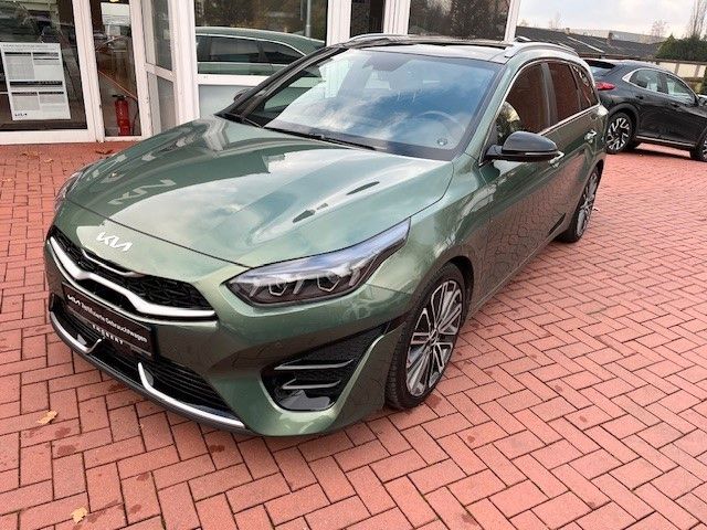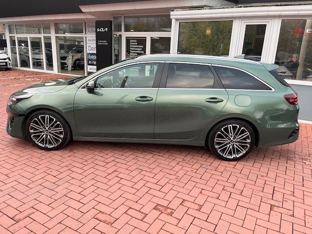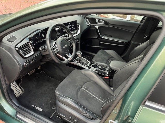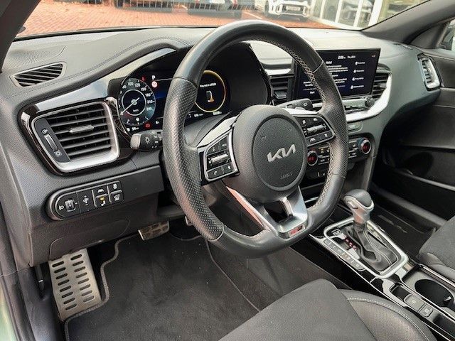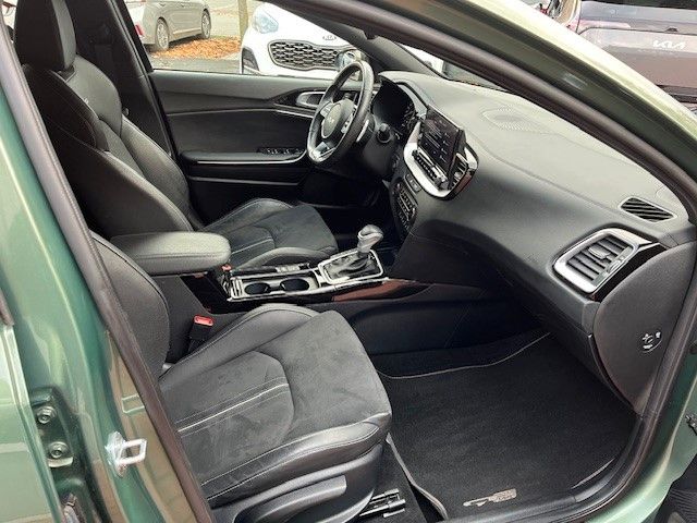 6 Lautsprecher, Adaptive Geschwindigkeits-Regelanlage mit Stop&Go-Funktion, Airbag Fahrer-/Beifahrerseite, Antriebs-Schlupfregelung (TCS), Anzeigeinstrumente Supervision mit LCD Display, Audio-Navigationssystem KIA (10,25"), Ausstattung GT-LINE, Außenspiegel elektr. anklappbar, Außenspiegel elektr. verstellbar, beide, Außenspiegel heizbar, Außenspiegelgehäuse Klavierlack, Bi-LED-Scheinwerfer, Blinkleuchte in Außenspiegel integriert, Bordcomputer, Bremsassistent, Chromeinfassung Seitenfenster, DAB-Tuner (Radioempfang digital), Dachantenne im Haifischflossen-Design, Dachhimmel schwarz, Dachreling, Dachspoiler, Einparkhilfe hinten, Einschaltautomatik für Fahrlicht, Einstiegsleisten (Aluminium), Elektr. Bremskraftverteilung (EBD), Fahrassistenz-System: aktiver Spurhalteassistent (LKAS, Lane Keep Assist System), Fahrassistenz-System: aktiver Totwinkel-Assistent (BCA-R), Fahrassistenz-System: Ausstiegswarnung (Safe Exit Assist, SEA), Fahrassistenz-System: Berganfahr-Assistent, Fahrassistenz-System: Fahrprofilauswahl (Drive Mode), Fahrassistenz-System: Fernlichtassistent, Fahrassistenz-System: Frontkollisionswarnung mit Fußgänger- und Fahrraderkennung und Abbiegefunktion, Fahrassistenz-System: Müdigkeitserkennungs-Sensor (Driver Attention Warning, DAW), Fahrassistenz-System: Querverkehrs-Assistent mit Notbremsfunktion (RCCA), Fahrassistenz-System: Spurfolgeassistent (Lane Following Assist, LFA), Fahrassistenz-System: Spurwechselassistent, Fahrassistenz-System: Verkehrszeichenerkennung, Fensterheber elektr. mit Einklemmschutz vorn, Fensterheber elektrisch vorn + hinten, Freisprecheinrichtung Bluetooth, Fußmatten, Gepäck-/Laderaummanagement-System, Gepäcknetz / Tasche an Vordersitzlehne, Gepäckraum-Abtrennung (Netz), Getriebe 7-Gang - Doppelkupplungsgetriebe DCT, Getränkehalter, Heckdiffusor, Heckleuchten LED, Heckscheibe heizbar, Heckscheibenwischer, Heckspoiler mit integrierter Bremsleuchte, Innenspiegel mit Abblendautomatik, Isofix-Aufnahmen für Kindersitz, Karosserie: 5-türig, Klimaautomatik 2-Zonen, Kopf-Airbag-System, Kopfstützen hinten verstellbar, Kopfstützen vorn verstellbar, Kühlergrill Klavierlack, Kühlergrill schwarz (glanzlackiert), Laderaumboden variabel, Lendenwirbelstütze Sitz vorn links und rechts, elektr. verstellbar, Lenkrad (Sport/Leder - 3-Speichen, unten abgeflacht) mit Multifunktion, Lenkrad heizbar, Lenkrad mit Multifunktion, Lenkrad mit Schaltwippen, LM-Felgen, Luftausströmer im Fond mitte, Mittelarmlehne hinten mit Getränkehalter, Mittelarmlehne vorn verschiebbar, Mobile Online Dienste UVO Connect / Kia Connect, Modellpflege, Motor 1,5 Ltr. - 118 kW T-GDI KAT, Multifunktion für Lenkrad, Parkbremse elektrisch, Pedale Aluminium, Reifen-Reparaturset, Reifendruck-Kontrollsystem, Rückfahrkamera, Schadstoffarm nach Abgasnorm Euro 6d, Schalt-/Wählhebelgriff Leder, Seitenairbag, Sitz vorn links höhenverstellbar, Sitz vorn rechts mech. höhenverstellbar, Sitzheizung vorn, Smartphone Schnittstelle (Apple CarPlay & Android Auto), Sonnenblenden mit Spiegel (beleuchtet), Sound-System JBL Premium, Start/Stop-Anlage (ISG), Steckdose (12V-Anschluß) im Koffer-/Laderaum, Steckdose (12V-Anschluß) in Mittelkonsole, Stoßfänger Wagenfarbe, Tagfahrlicht LED hinten, Touchscreen-Farbdisplay (7,0 Zoll), Türgriffe außen Wagenfarbe, Türgriffe innen Chrom-Optik, USB-Anschluss + AUX-IN-Anschluss, USB-Schnellladeanschluß Mittelkonsole, Verglasung hinten abgedunkelt (Privacy Glass), Warnanlage für Sicherheitsgurte hinten, Warnanlage für Sicherheitsgurte, Fahrer-/Beifahrerseite, Wärmeschutzverglasung
