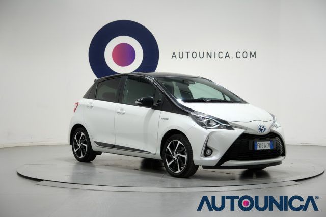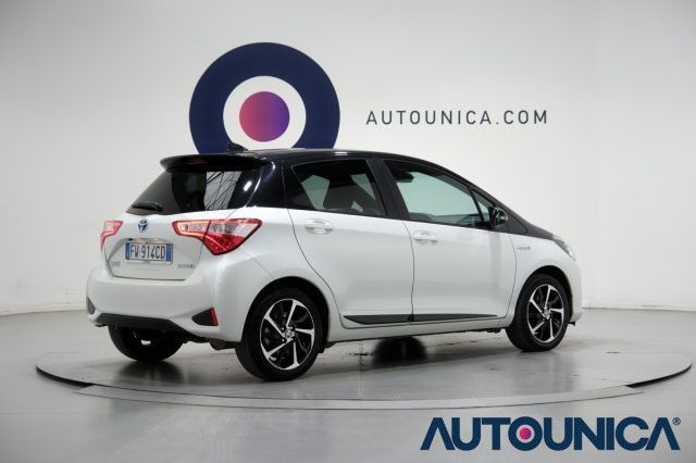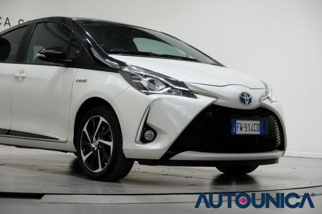 [Rif. 23033341]Toyota Yaris 1.5 Hybrid 5 Porte Trend White Edition del 2019, spinta dal sistema ibrido Toyota da 100 CV, brillante ed estremamente efficiente nei consumi, perfetta anche per neopatentati. La versione Trend si distingue per cura dei dettagli e dotazioni complete, con cerchi in lega, bracciolo centrale, volante multifunzione e sistema multimediale con touch screen, USB, Bluetooth, autoradio e autoradio digitale.La sicurezza è garantita da ABS, ESP, airbag multipli, attacchi Isofix, controllo trazione, frenata d?emergenza assistita e immobilizzatore elettronico. Presenti anche il riconoscimento dei segnali stradali, l?avviso distanza, il controllo elettronico della corsia, sensore di luce e pioggia, luci diurne, fari LED e fendinebbia.Completa sul fronte comfort, dispone di climatizzatore con controllo automatico, servosterzo, alzacristalli elettrici, chiusura centralizzata anche telecomandata, specchietti laterali elettrici e sistema Start/Stop Automatico. La telecamera per il parcheggio assistito semplifica ogni manovra.Una compatta moderna, affidabile e facilissima da gestire, ideale per chi cerca efficienza e dotazioni complete nel quotidiano.