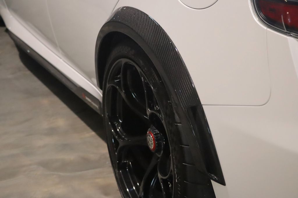 Notre exemplaire est d’origine italienne, immatriculé en France en 2022, et le malus CO₂ a été acquitté. Numéroté (115/500), il dispose du kit Sauber. La liste des pièces en carbone est pléthorique : lame avant, calandre, capot, toit, rétroviseurs, extensions d’aile, diffuseur arrière, spoiler. À l’intérieur, on retrouve les magnifiques sièges baquet Sparco en carbone, associés à de l’alcantara jusque sur le tableau de bord. Une révision sera effectuée dans le cadre de la vente.