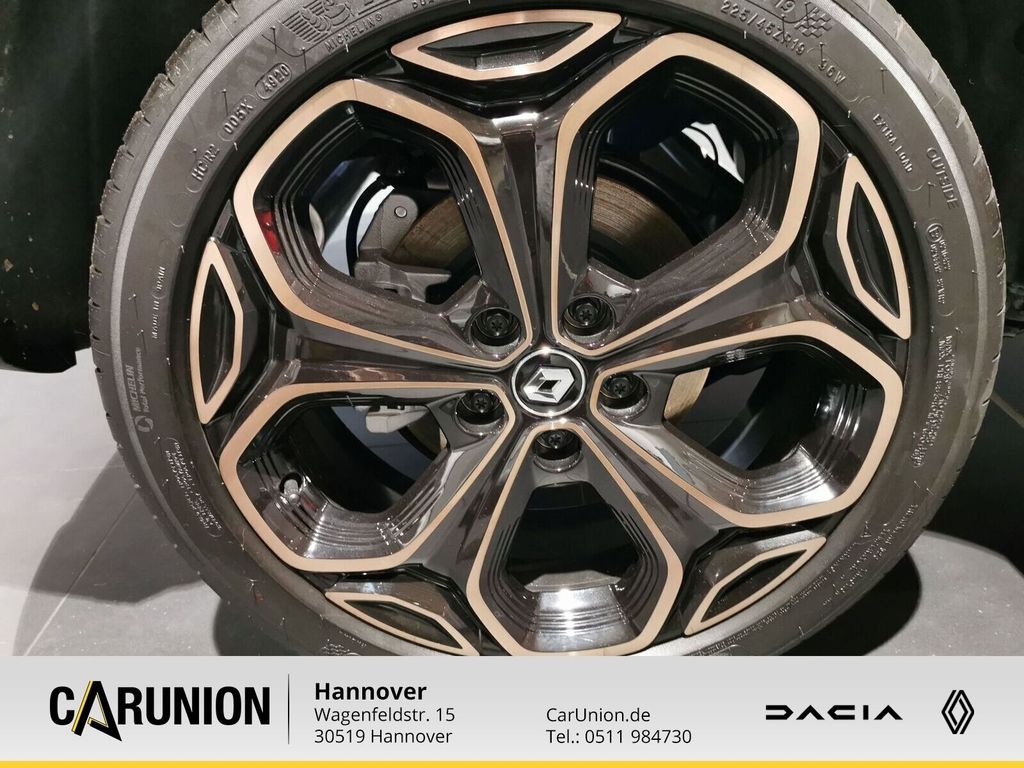 Ambiente-Beleuchtung, Kartenmaterial für Europa, Voll-LED-Scheinwerfer LED Pure Vision (nur in Verbindung mit, LED-Tagfahrlicht, Toter-Winkel-Warner, Sim-Karte für Onlinedienste (Onlineverbindung nach Testphase, 19 Zoll-Leichtmetallfelgen Bandana, Schaltpunktanzeige, BOSE Sound-System inkl. Renault R-LINK 2 und Navigationssyst, Easy-Park-Assistent, Spurhalte-Warner, Verkehrszeichenerkennung mit Geschwindigkeitswarner, Notbremsassistent, Standardlackierung ohne Aufpreis, Kältemittel 1234Y, Fernlichtassistent, Smartphone-Integration via Android Auto und Apple CarPlay, Rückfahrkamera, Beifahrer-Airbag deaktivierbar, Alarmanlagenvorrüstung, Elektronische Parkbremse, Sonnenblende und beleuchteter Spiegel, Seitenschutzleisten, Leichtmetallräder 19 Zoll, Beheizbare Vordersitze, ABS, Dachhimmel in schwarz, adaptiver Tempopilot, Seitenschutzleisten am unteren Türbereich mit Chromapplikati, Seitenscheiben hinten und Heckscheiben stark getönt, LED-Nebelscheinwerfer, Alcantara-Lederpolsterung Black Edition", Bremsassistent, Front- Seiten- und Window-Airbags, 2-Zonen-Klimaautomatik, Innenspiegel automatisch abblendend, Nappa-Lederlenkrad, Licht- und Regensensor, ESP mit ASR, Elektrisch einstell- beheiz- und anklappbare Außenspiegel, Dachreling, Fahrer- und Beifahrer-Airbags, ISOFIX Kindersitzvorrüstung, Fahrersitz elektrisch einstellbar, Rücksitzbank 60/40 inklusive Easybreak (vom Kofferraum aus p, Außenspiegel beleuchtet bei Öffnung und Schließung, 360 Grad-Sensoren