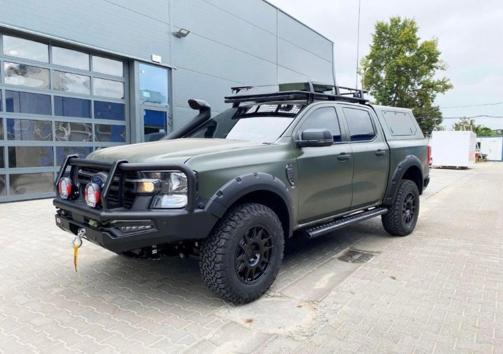 Zum Verkauf bieten wir Ihnen einen FORD RANGER PICKUP Gepanzert mit B6 Panzerung. IN STOCK SOFORT VERFÜGBAR ∗NEUWAGEN ∗MANUAL ∗2.0 DIESEL ∗Gepanzert ∗Armoured ∗Armored ∗Panzerung B6 / VR7 ∗Euro 6 ∗Grüne Plakette Sonderausstattung: Audio-Paket 44, Laderaumwanne gesprüht (Laderaumbeschichtung PU), Sonderlackierung weiß Frozen, Stoßfänger hinten mit Trittstufe Weitere Ausstattung: Außenspiegel elektr. verstellbar, Außenspiegel schwarz, Blinkleuchte in Außenspiegel integriert, Dachhimmel Stoff, Fahrassistenz-System: Fernlichtassistent (Scheinwerfer mit Abblendautomatik), Fensterheber elektrisch hinten, FordPass Connect inkl. eCall, Fußmatten vorn, Heckklappe/-Deckel mit Schlossöffnung, Heckscheibe heizbar, Innenraumfilter: Staub- und Pollenfilter, Karosserie/Aufbau: Pritsche, Doppelkabine, Kombiinstrument Digitalanzeige 8 Zoll, Kotflügelverbreiterung, Kühlergrill schwarz, Motor 2,0 Ltr. - 125 kW EcoBlue, Rad-Paket 7, Radstand 3270 mm, Reifendruck-Kontrollsystem, Rücksitz-Paket 15, Schadstoffarm nach Abgasnorm Euro 6d, Schmutzfänger hinten, Sicherheits-Paket 3, Sitz-Paket 1B / 11 / 37 / 43, Start/Stop-Anlage, Technologie-Paket 19, Vorbereitungs-Paket Tachograph BATTERY ADDITIONAL SUPPORT (BACK UP) An additional support battery is installed in the event of the main vehicle battery not operating on full load; or when auxiliary electrical equipment is being used, such as communications. The battery is charged by a diode system and its capacity is constantly controlled. If the main battery is flat, or develops a defect, the second battery will take over this function. BATTERY ARMOR PROTECTION Both vehicle batteries, main and support, are protected with armored steel boxes, providing ballistic protection against projectiles and splinters. Both armored boxes can easily be removed for routine battery maintenance. The Suspension The entire suspension system such as shock absorbers and coil springs has been changed to engineered-to-purpose —manufactured specifically for Stoof International - to ensure reliability and road safety. The vehicle braking system has been adapted to adhere additional weight constraints that have been applied to the vehicle main body components. OEM suspension components have been replaced with specially made reinforced coils / springs / front and rear stabilizers / specially calibrated Bilstein Shock Absorbers. The components have been branded and coloured red for easy identification, the shock absorbers have a different serial number registered with Bilstein. The vehicles have been trial tested with these exclusive components by the specialist suspension companies SUSPENSION AND BRAKING SYSTEM (ENGINEERED-TO-PURPOSE) The entire suspension e.g. shock absorbers and coil springs have been changed to upgraded components to ensure reliability and road safety. The vehicle braking system has been adapted to adhere additional weight constraints that have been applied to the vehicle main body components. Tyres and rims have been approved for the higher weight ratio according to TÜV / MOT type recommendations and legal requirements ROOF PROTECTION The roof of the vehicle is designed in such a way that it will defeat the following hand grenades and all lesser explosives.- Two (2) DM 51 (German Norm) detonated simultaneously