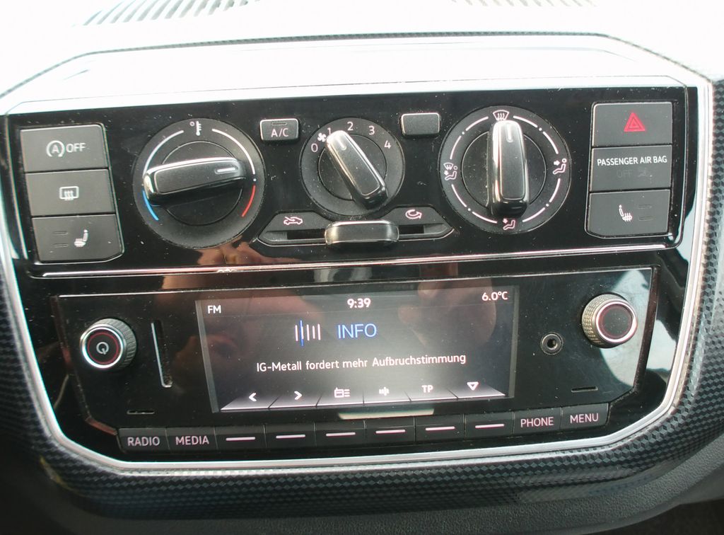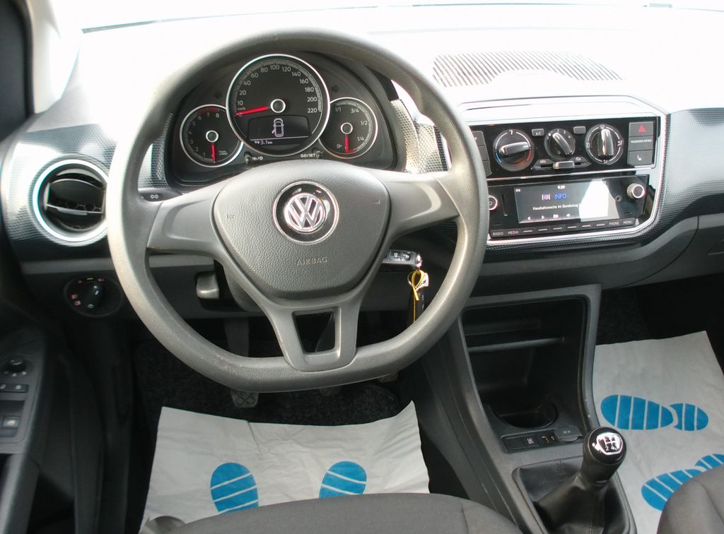 Airbag Beifahrerseite abschaltbar, Airbag Fahrer-/Beifahrerseite, Antriebs-Schlupfregelung (ASR), Außenspiegel lackiert, Bremsassistent, Dachhimmel Stoff, grau, Drehzahlmesser, Einstiegshilfe Easy-Entry mit Memoryfunktion links, Frontscheibe Verbundglas getönt, Funkschlüssel (2) klappbar, Gepäckraumabdeckung / Rollo, Gepäckraumbeleuchtung, Gepäckraumboden höhenverstellbar, Handschuhfach mit Klappe, Heckscheibe heizbar, Heckscheibenwischer, Innenausstattung: Dekor Black Cube, Innenspiegel abblendbar, Isofix-Aufnahmen für Kindersitz an Rücksitz, Karosserie: 4-türig, Kennzeichenbeleuchtung LED, Kopfstützen hinten, Lautsprecher (2), Lenkrad (3 Speichen), Lenksäule (Lenkrad) höhenverstellbar, Mobile Online Dienste VW Connect, Modellpflege, Motor 1,0 Ltr. - 44 kW, Motor-Schleppmoment-Regulator (MSR), Multifunktionsanzeige Plus, Multimedia-Schnittstelle USB, Nebelschlussleuchte, Nichtraucher-Paket, Radstand 2420 mm, Radvollabdeckungen / Radzierblenden, Reifen-Reparaturkit (Tire Mobility Set), Reifenkontroll-Anzeige, Rücksitzbank umklappbar, Rücksitzlehne geteilt, Schadstoffarm nach Abgasnorm Euro 6d-TEMP, Scheibenwischer mit Intervallschaltung, Seitenairbag vorn mit Kopf-Airbag-Einheit, Sitz vorn links höhenverstellbar, Sitzbezug / Polsterung: Stoff, Sonnenblende rechts mit Spiegel, Stahlfelgen 5x14, Start/Stop-Anlage, Stoßfänger lackiert, Türgriffe außen Wagenfarbe, Türgriffe innen verchromt, Verbandkasten und Warndreieck, Wärmeschutzverglasung grün getönt