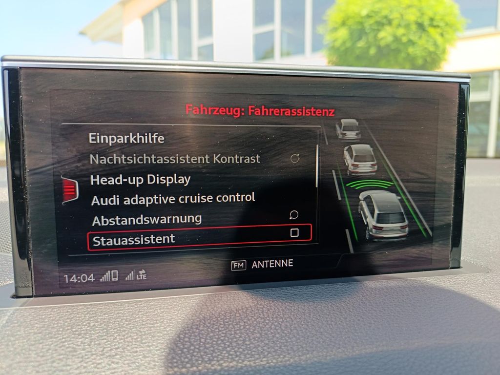 - Assistenz-Paket Tour (Fahrassistenz-System: Bremsassistent (Audi pre sense front), Fahrassistenz-System: Stauassistent, Fahrassistenz-System: Ausweich-Assistent, Fahrassistenz-System: Abbiege-Assistent links, Fahrassistenz-System: Autom. Distanzregelung (Adaptive Cruise Control) mit Stop&Go-System inkl. Audi pre sense front, Fahrassistenz-System: Spurhalteassistent (active lane assist) )