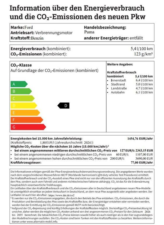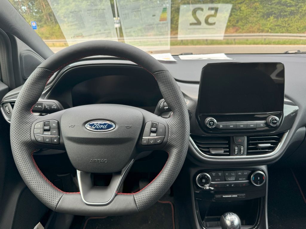 Ambiente-Beleuchtung vorn (LED), Antischlupfregelung (ASR), Audio-Navigationssystem Ford mit AppLink, Außenspiegel elektr. anklappbar, Außenspiegel elektr. verstell- und heizbar, Body-Styling-Paket, Dachhimmel Stoff, dunkel, Eco-Anzeige für verbrauchsoptimiertes Fahren (EcoCoach), Einparkhilfe hinten, Fahrassistenz-System: Berganfahr-Assistent (Hill-Holder), Fahrassistenz-System: Falschfahrer-Warnfunktion, Fahrassistenz-System: Fernlichtassistent (Scheinwerfer mit Abblendautomatik), Fahrassistenz-System: Notbrems-Assistent, Fahrassistenz-System: Post-Collision-System, Fahrassistenz-System: Pre-Collision-System, Fahrassistenz-System: Spurhalteassistent mit Müdigkeitserkennungs-Sensor, Fahrassistenz-System: Verkehrsschildassistent, Farbdisplay für Bordcomputer, Fensterheber elektrisch vorn + hinten mit Komfortschließung, FordPass Connect inkl. eCall, Fußmatten Teppich, Getriebe 6-Gang - Typ: 6MX65, Heckleuchten LED, Innenraumfilter: Staub- und Pollenfilter, Intelligent Protection System (IPS), Intelligenter Geschwindigkeits-Begrenzer, Isofix-Aufnahmen für Kindersitz, Karosserie: 5-türig, Kombiinstrument Digitalanzeige 12,3 Zoll, Kopfstützen hinten mechan. verstellbar (3 Stück), Laderaumboden variabel (Ford Megabox), Lendenwirbelstütze Sitz vorn links, Lenksäule (Lenkrad) höhen-/längsverstellbar, LM-Felgen, Mild-Hybrid 92 kW (Motor 1,0 Ltr. - 92 kW EcoBoost), My Key (2. Fahrzeugschlüssel programmierbar), Nebelscheinwerfer LED, Otto-Partikelfilter (OPF), Pedale Aluminium, Radstand 2588 mm, Reifen-Reparaturkit, Reifendruck-Kontrollsystem, Rücksitzlehne geteilt/klappbar (60:40), Schadstoffarm nach Abgasnorm Euro 6d, Scheinwerfer LED, Scheinwerfer-Assistent mit Tag-/Nachtsensor, Sitze vorn höhenverstellbar, Sonnenblende links mit Spiegel (beleuchtet), Sonnenblende rechts mit Spiegel (beleuchtet), Sport-Fahrwerk, Sportsitze vorn, Standard Variante, Start/Stop-Anlage, Türgriffe außen Wagenfarbe