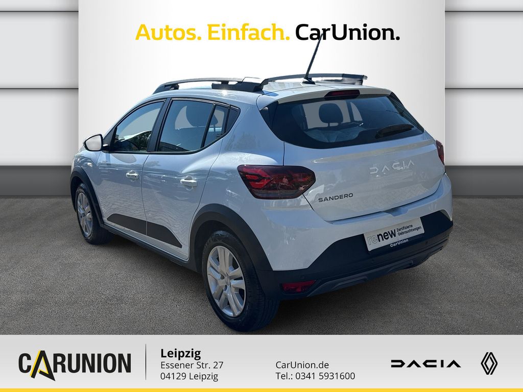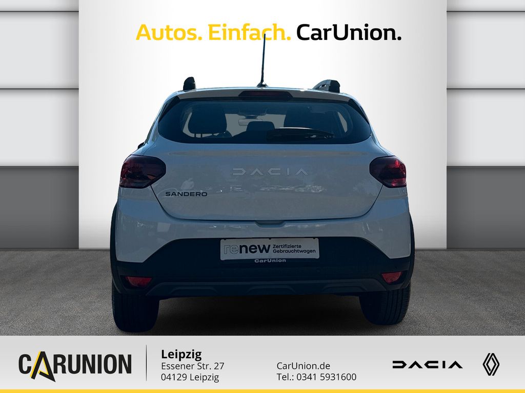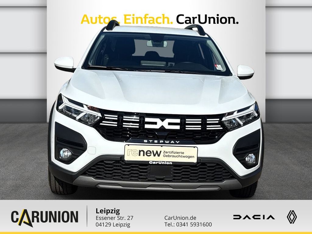 Außenspiegelgehäuse in Kupferfarbe, Zentralverriegelung mit Funk-Fernbedienung, Designradblende 5 Doppelspeichen Saria, Tempopilot mit Geschwindigkeitsbegrenzer, LED-Abblendlicht mit Lichtautomatik, ESP (Elektronisches Stabilitätsprogramm) und Berganfahrhilfe, Tagfahrlicht mit Y-förmiger LED-Lichtsignatur, Eco-Mode zur Reichweitenoptimierung, Einparkhilfe hinten akustisch, Aktives Notfall-Bremsassistenzsystem (AEBS), Kältemittel R1234yf, Elektrische Fensterheber hinten, Lenkrad höhen- und tiefenverstellbar, Bordcomputer, E-Call: Automatischer Notruf, Reifendruckkontrollsystem indirekt, Nebelscheinwerfer, Media Display: Multimediasystem mit 8-Zoll-Touchscreen, Modularer Kofferraumboden, Dreipunkt-Sicherheitsgurte auf allen Sitzen, Lenkrad in Lederoptik, ABS (Anti-Blockier-System) und Notbremsassistent, Stoffpolsterung Stepway, Modulare Dachreling quer zur Fahrtrichtung montierbar, Elektrische Fensterheber vorne mit Impulsschaltung auf der F, Fahrersitz höhenverstellbar mit Armlehne, Seitenairbags vorne und Windowbags für vorne und hinten, Manuelle Klimaanlage mit Pollenfilter, Regensensor, 16-Zoll-Stahlräder, Außenspiegel elektrisch einstell- und beheizbar, Stoßfänger in Wagenfarbe, Frontairbags für Fahrer und Beifahrer (Beifahrerairbag deakt, ISOFIX-Kindersitzbefestigung auf den hinteren Außenplätzen, Rücksitzlehne asymmetrisch umklappbar (1/3 zu 2/3), Automatische Türverriegelung nach dem Anfahren, Mobilitäts-Set (12-V-Kompressor und Reifendichtmittel), Drei Kopfstützen hinten höhenverstellbar, Standardlackierung ohne Aufpreis