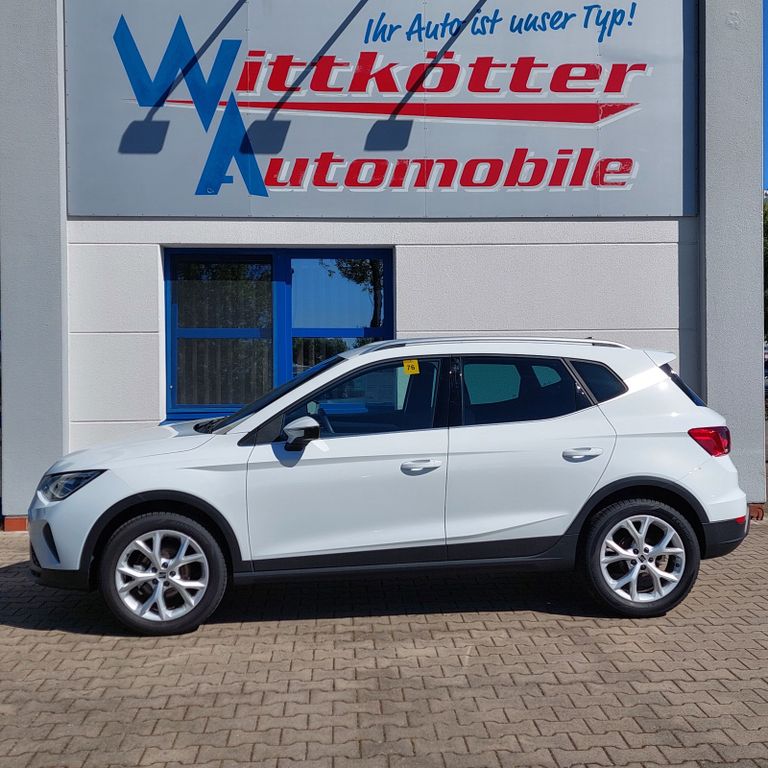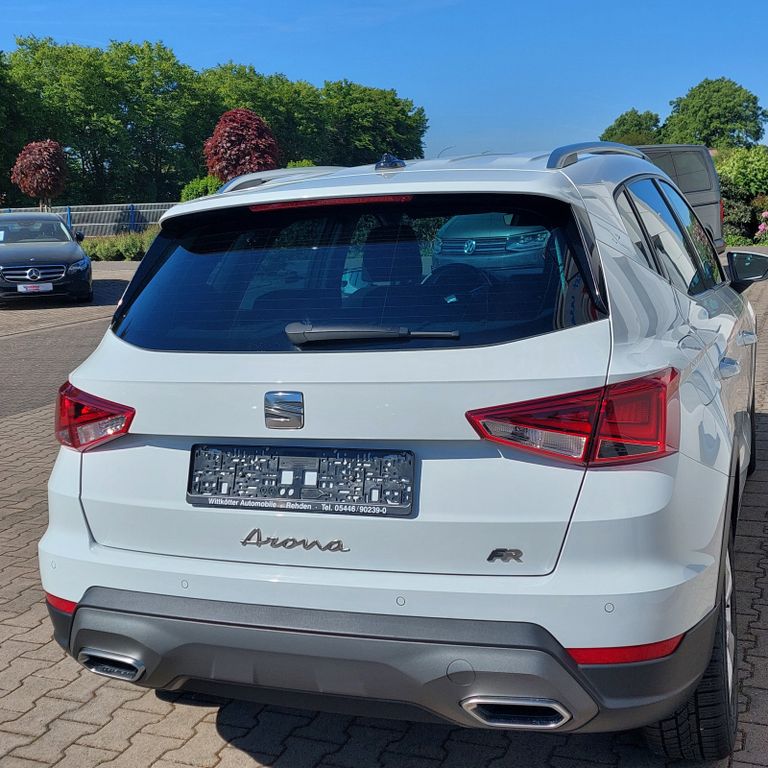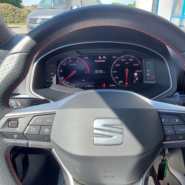 3. Bremsleuchte, Airbag Beifahrerseite abschaltbar, Airbag Fahrer-/Beifahrerseite, Ambiente-Beleuchtung LED, Antriebs-Schlupfregelung (ASR), Außenspiegel Dachfarbe, Außenspiegel elektr. verstell-, heiz- und anklappbar, beide, Außentemperaturanzeige, Bordcomputer, Bremsassistent, Chromleisten an Seitenfenstern, Dachhimmel schwarz, Dachreling, Einparkhilfe hinten, Einschaltautomatik für Fahrlicht, Elektr. Bremskraftverteilung, Elektron. Querdifferentialsperre (XDS), Fahrassistenz-System: Berganfahr-Assistent (Hill-Holder), Fahrassistenz-System: Fahrprofilauswahl (SEAT Drive Profile), Fahrassistenz-System: Multikollisionsbremse (Multi Collision Brake), Fahrassistenz-System: Müdigkeitserkennung, Fahrassistenz-System: Spurhalteassistent, Fahrassistenz-System: Umfeldbeobachtungssystem (Front assist) mit City-Notbremsfunktion, Gepäckraumabdeckung / Rollo, Heckleuchten LED, Heckscheibe heizbar, Heckscheibenwischer, Innenraumfilter: Pollenfilter, Isofix-Aufnahmen für Kindersitz, Karosserie: 5-türig, Klima-Komfort-Paket L, Kofferraumbeleuchtung, Kopf-Airbag-System, Kopfstützen hinten, Kopfstützen vorn, Laderaumboden variabel und herausnehmbar, Lenkrad (Leder) mit Multifunktion, Lenksäule (Lenkrad) höhenverstellbar, Lenksäule (Lenkrad) verstellbar, LM-Felgen, Modellpflege, Motor 1,0 Ltr. - 81 kW TSI, Notrufsystem, Otto-Partikelfilter (OPF), Radstand 2566 mm, Reifendruck-Kontrollsystem, Reifenkontroll-Anzeige, Rücksitzlehne geteilt/klappbar (1/3-2/3), Schadstoffarm nach Abgasnorm Euro 6d, Scheinwerfer LED, SEAT Media-System Touch Colour, Seitenairbag, Sitze vorn höhenverstellbar, Sportsitze vorn, Sprachsteuerungs-System, Start/Stop-Anlage, Steckdose (12V-Anschluß) vorn, Stoßfänger FR-Design, Türgriffe außen lackiert, Wärmeschutzverglasung