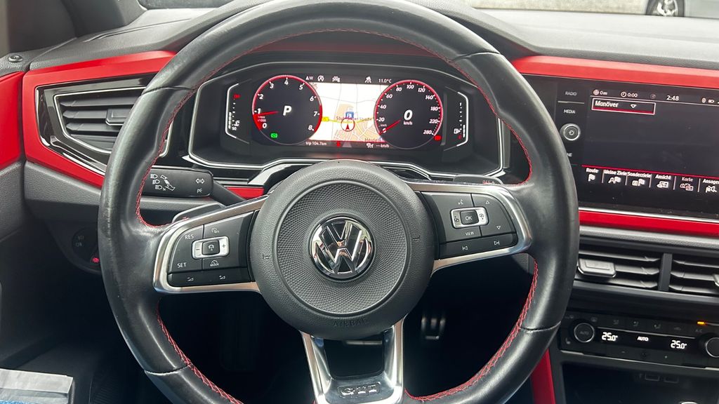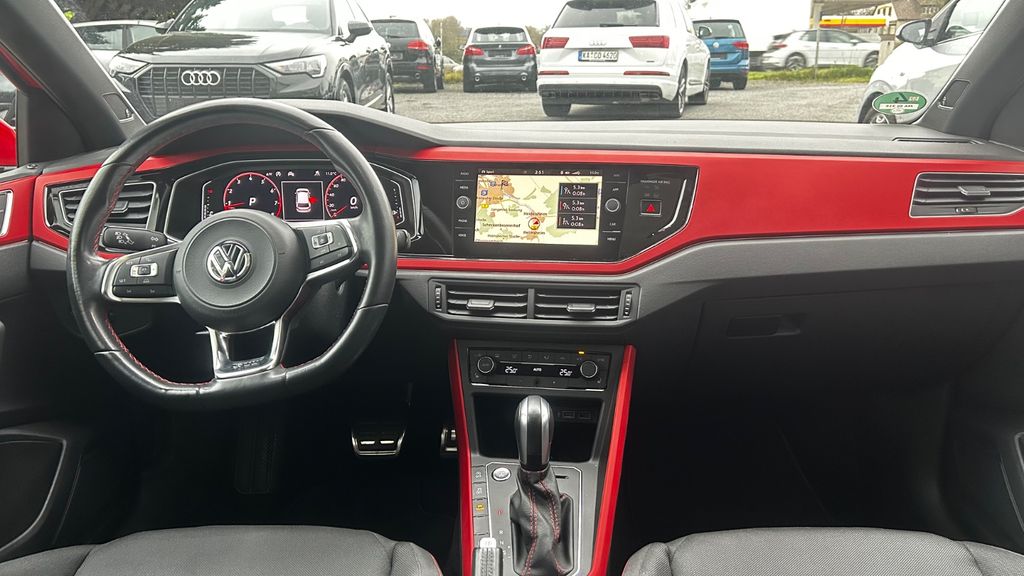 3-Punkt-Sicherheitsgurt hinten mitte, Ablagetasche an Vordersitzlehnen, Airbag Fahrer-/Beifahrerseite, Beifahrerairbag abschaltbar, Ambiente-Beleuchtung weiß, Antriebs-Schlupfregelung (ASR), Ausstattung GTI, Automatische Fahrlichtschaltung (ALS) mit Leaving Home / Coming-Home-Lichtfunktion, Außenspiegel und Türgriffe außen in Wagenfarbe, Bremsassistent, Bremsenergierückgewinnung, Bremssättel Rot lackiert, Chrom-Paket 2, Dachhimmel Stoff, schwarz, Doppelendrohr Chrom, Drehzahlmesser, Einparkhilfe vorn und hinten, Einstiegsleisten (Aluminium), Elektron. Differentialsperre (XDS), Fahrassistenz-System: Berganfahr-Assistent, Fahrassistenz-System: Fahrprofilauswahl, Fahrassistenz-System: Fußgängererkennung, Fahrassistenz-System: Müdigkeitserkennung, Fahrassistenz-System: Umfeldbeobachtungssystem (Front assist) mit City-Notbremsfunktion, Fensterheber elektrisch vorn und hinten, Frontscheibe Verbundglas getönt, Funkschlüssel (2) klappbar, Fußmatten Textil, Fußraumbeleuchtung vorn LED, Gepäckraumabdeckung / Rollo, Gepäckraumbeleuchtung, Geschwindigkeits-Begrenzeranlage, Handbremshebelgriff Leder, Heckleuchten LED, dunkelrot, Heckscheibenwischer, Innenausstattung: Dekoreinlagen Rot, Innenleuchten LED, Isofix-Aufnahmen für Kindersitz an Rücksitze (inkl. i-Size-Kindersitze), Karosserie: 5-türig, Kennzeichenbeleuchtung LED, Kopf-Airbag-System vorn und hinten inkl. Seitenairbag vorn, Kopfstützen hinten (3-fach), Lendenwirbelstützen vorn, Lenkrad (Sport/Leder) mit Multifunktion und Schaltfunktion, Lenksäule (Lenkrad) mechan. verstellbar, Höhen-/Längsverstellung, Leseleuchten vorn und hinten LED, Mittelarmlehne vorn verschiebbar, mit Ablagefach, Mobile Online Dienste VW Connect, Motor 2,0 Ltr. - 147 kW 16V T FSI / TSI, Motor-Schleppmoment-Regulator (MSR), Multimedia-Schnittstelle USB und USB-Ladeanschluß vorn, Nebelschlussleuchte, Otto-Partikelfilter (OPF), Pedale Edelstahl, Reifenkontroll-Anzeige, Rücksitzlehne geteilt, Schadstoffarm nach Abgasnorm Euro 6d-TEMP, Schalt-/Wählhebelgriff Sport, Sicherheitsgurte hinten außen mit Gurtstraffer, Sicherheitsgurte vorn mit Gurtstraffer, höhenverstellbar, Sitzbezug / Polsterung: Stoff, Sitze vorn höhenverstellbar, Sitze: Top-Sportsitze vorn, Sonnenblenden mit Spiegel (beleuchtet), Sport-Fahrwerk, Start/Stop-Anlage, Stoßfänger Sport-Design, lackiert, USB-Anschlüsse (2) für 2.Sitzreihe (nur Ladefunktion), Verbandkasten und Warndreieck, Verglasung grün getönt, Warnanlage für Sicherheitsgurte vorn und hinten