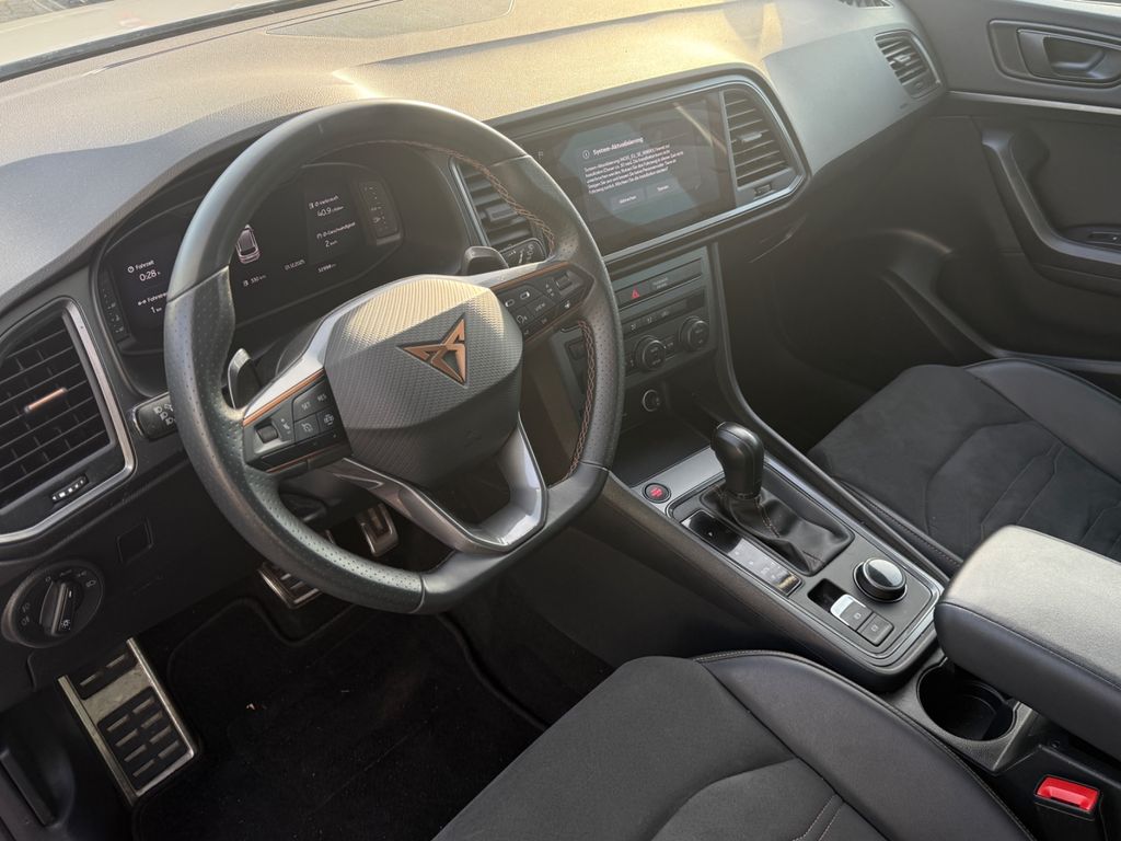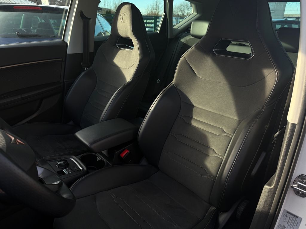 3. Bremsleuchte, Ablagetasche an Vordersitzlehnen, Airbag Beifahrerseite abschaltbar, Airbag Fahrer-/Beifahrerseite, Ambiente-Beleuchtung LED, Antriebs-Schlupfregelung (ASR), Audio-Navigationssystem mit Touchscreen Farbbildschirm, Außenspiegel elektr. verstell-, heiz- und anklappbar mit Spiegelabsenkung und Welcome Light, Bluetooth-Schnittstelle mit Freisprecheinrichtung integriert, Bordcomputer, Brillenfach, Dachreling schwarz, Doppelendrohr Auspuffanlage, links/rechts, Doppeltonhorn, Einstiegsleisten (Aluminium) vorn, beleuchtet, Elektron. Differentialsperre (XDS), Fahrassistenz-System: Fahrprofilauswahl (CUPRA Drive Profile), Fahrassistenz-System: Parklenkassistent mit Einparkhilfe vorn und hinten inkl. Rückfahrkamera, Fensterheber elektrisch vorn + hinten mit Komfortschaltung, Full Link (MirrorLink, Apple CarPlay und Android Auto), Fußraumbeleuchtung LED, Gepäckraumabdeckung / Rollo, Handschuhfach mit LED-Beleuchtung, Heckleuchten LED mit dynamischem Blinklicht, Heckspoiler Wagenfarbe (Dachspoiler), Isofix-Aufnahmen für Kindersitz an Rücksitz, Karosserie: 5-türig, Klimaanlage Climatronic 2-Zonen, Knieairbag Fahrerseite, Kombiinstrument digital (virtual cockpit), Kopf-Airbag-System, Lendenwirbelstütze Sitz vorn links, verstellbar, Lendenwirbelstütze Sitz vorn rechts, verstellbar, Licht- und Sicht-Paket, LM-Felgen, Mittelarmlehne hinten, Mittelkonsole vorn mit Mittelarmlehne, Becherhalter, Ablagebox und Luftausströmer hinten, Modellpflege, Motor 1,5 Ltr. - 110 kW 16V TSI ACT, Notrufsystem, Otto-Partikelfilter (OPF), Parkbremse elektrisch, Pedale Aluminium-Design, Radlaufabdeckung vorn und hinten lackiert, Radstand 2681 mm, Reifen-Reparaturset, Rücksitzlehne geteilt/klappbar (1/3-2/3), Schadstoffarm nach Abgasnorm Euro 6d, Schriftzug auf der Heckklappe, Seitenairbag, Seitenscheiben hinten und Heckscheibe abgedunkelt, Sitz vorn links höhenverstellbar, Sitz vorn rechts höhenverstellbar, Sitzbezug / Polsterung: Sitzmittelbahn in Mikrofaser, Sonnenblende links mit Spiegel (beleuchtet), Sonnenblende rechts mit Spiegel (beleuchtet), Sport-Schalensitze vorn mit integrierten Kopfstützen, Start/Stop-Anlage, Stau-/Ablagefach unter Sitz vorn links, Steckdose (12V-Anschluß) vorn, Stoßfänger hinten Cupra-Design mit Diffusor, Stoßfänger vorn Cupra-Design, USB-Ladeanschlüsse (2-fach, Typ C) für 2.Sitzreihe, Verzurrösen Koffer-/Laderaum, Wärmeschutzverglasung