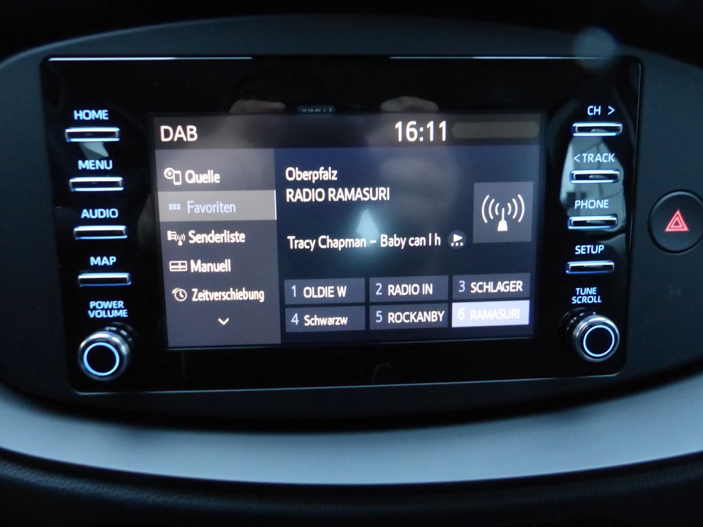 Audio: Multimediasystem Toyota Smart x-connect, Touchscreen 7“, Farbdiaplay, HiFi RDS-Radio, DAB-Tuner (digitaler Radioempfang), Bluetooth Schnittstelle, USB-Anschluss, Lenkradfernbedienung, Lautsprechersystem
