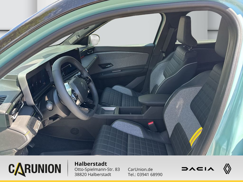 Paket: Harman Kardon - Radiio: OpenR link Multimedia system mit 10, 1-Zoll - Infotainmentsystem - Soundsystem Harman Kardon mit Subwoofer und 8 Lautsprecher - Navigationssystem mit Google Maps - Integriertem Google Services - Kabellosem Android Auto & Apple Carplay - Sprachgesteuertem Google-Assistent, Paket: Safety & Advanced Driving Assist - Active Driver Assist - Ausstiegsassistent - intelligenter Adaptiver Tempopilot mit Spurzentrierung - Rückfahr-Notbremsassistent - Toter-Winkel Warner, V2L-Adapter - zum Anschluss von externen Elektrogeräten, 3-Punkt-Gurtsystem auf allen Plätzen hi., ABS, EBV, Airbag für Fahrer und Beifahrer, Airbag: Beifahrerairbag deaktivierbar, Airbag: Seitenairb. und Windowbags vorne, Ambientebeleuchtung, personalisierbar, Armaturenbrett in Textil Jeans-Stoff, Außenspiegel el. anklapp/einstell/beheiz, Außenspiegel in Schwarz, Beklebung: Dachlinie in Silber, Bremsleuchte dritte, Connected Services, Digitales Tachodisplay 10-Zoll, ESP mit Berganfahrassistent, Einparkhilfe v./h., seit.mit Easy-Park-As, Elek. Heckklappeöffnung mit Fußsens., Fensterheber elektrisch hinten, Fensterheber elektrisch vorne, Fernlichtassistent, Frontgrill und Renault Logo beleuchtet, Geräuschsimulator, Getriebe: Direktantrieb, Gurtwarner, Haifischantenne, Heckscheibe beheizbar, Heckscheibenwischer, ISOFIX-i-Size-Kindersitzbefestigung, Induktive Smartphoneladefläche, Innenharmonie Iconic, Innenspiegel aut. abblendend rahmenlos, Keycard Handsfree, Klimaautomatik, Kopfstützen (3) hinten höhenverstellbar, Kopfstützen vorn, LED-Beleuchtung vorne und hinten, LED-Tagfahrlicht, Lackierung: Zweifarb-Lackierung Metallic, Ladekabel Mode 3, Laden: On-board Charger, Lenkrad in Lederoptik, Lenkrad: Lenkrad beheizbar, Lenkrad: Schaltwippen am Lenkrad, Licht- und Regensensor, Mittelkonsole mit Staufach und Mittelarm, Multi-Sense mit Ambientebeleuchtung, Müdigkeitswarner, Notbremsas.Fußgänger-/Fahrraderken.Kreuz, Notfall-Spurhalte-Assistent, Parkbremse elektronisch, Polster: Stoff, Reifendruckkontrollsystem indirekt, Räder: 18-Zoll-LM "Parisienn" schw. glan, Räder: Reifenreparaturset, Rückfahrkamera, Servolenkung, Sicherheitsabstand-Warner, Sitze: Fahrer und Beifahr. höhenverst., Sitze: Rücksitzbank 60/40 teilbar, Sitze: Vordersitze beheizbar, Stark getönte Heck/ Seitenscheiben hinte, Tempopilot adaptiv, USB: 2 USB-C Anschlüsse vorne, Verkehrszeichenerkennung, Virtual Assistant Reno, Voll-LED-Scheinwerfer LED PURE VISION, Wegfahrsperre, Wärmepumpe, Zentralverriegelung mit Fernbedienung, eCall-Norufsystem, 18-Zoll-Leichtmetallräder, Beheizbares Lenkrad, Elektrische Fensterheber vorne mit Impulsschaltung und Klemm, Elektrische Fensterheber hinten mit Impulsschaltung und Klem, Vordersitze beheizbar, Fahrer- und Beifahrerairbag, Kunstleder, 100% recycelte Polsterung / schwarzer g