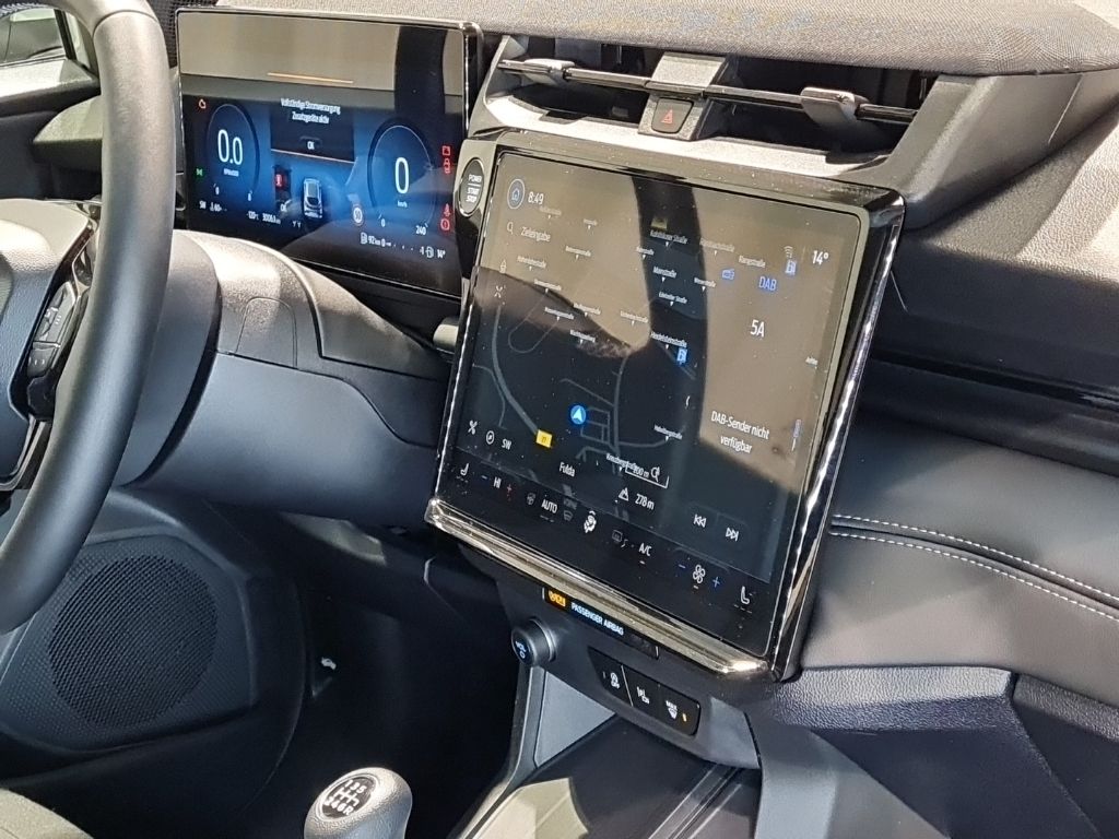 Klimaautomatik; Audiobedienung am Lenkrad; Fensterheber elektrisch vorn + hinten mit Komfortschließung; Kombiinstrument Digitalanzeige 12,8 Zoll; Lenkrad heizbar; Lenkrad (Leder 3-Speichen); Lenksäule (Lenkrad) höhen-/längsverstellbar; Laderaumboden variabel (Ford Megabox); Sonnenblende links mit Spiegel (beleuchtet); Ambiente-Beleuchtung vorn (LED); Sonnenblende rechts mit Spiegel (beleuchtet)