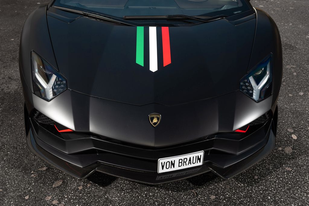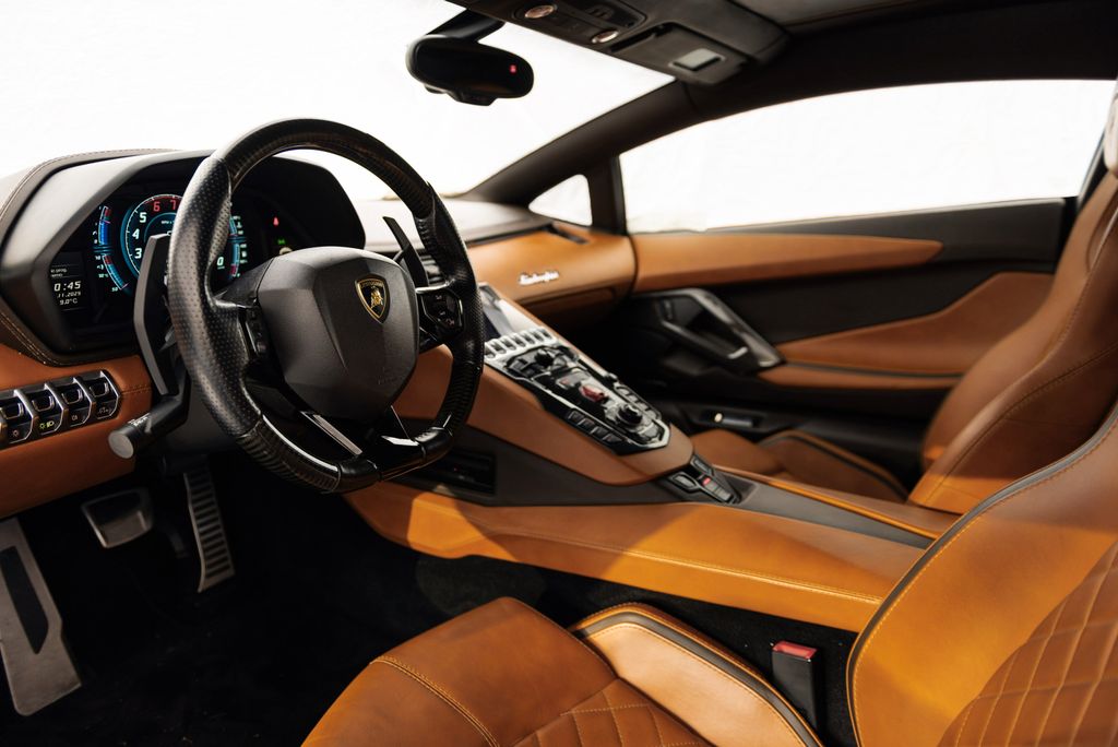This Aventador is richly equipped with, among other things, carbon fiber in the engine bay, carbon fiber X-frame, carbon fiber lower part & style package, Sensonum Premium sound system, lift system, rear-view camera, and front and rear parking sensors.