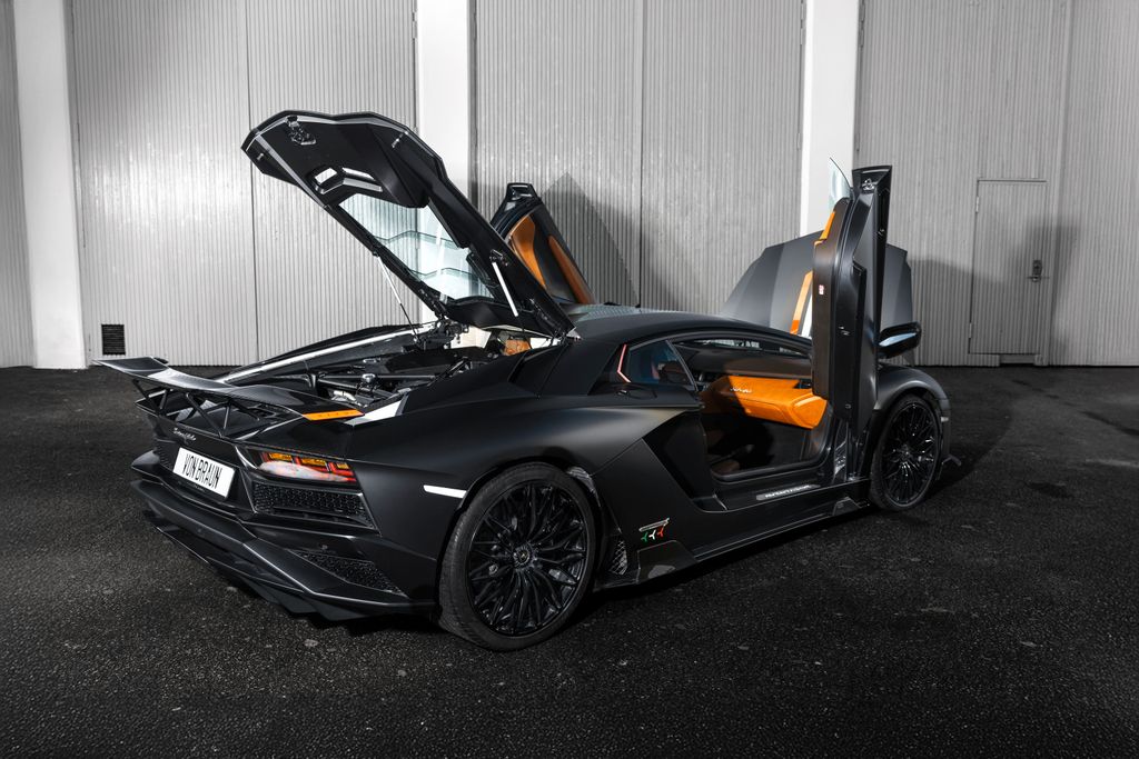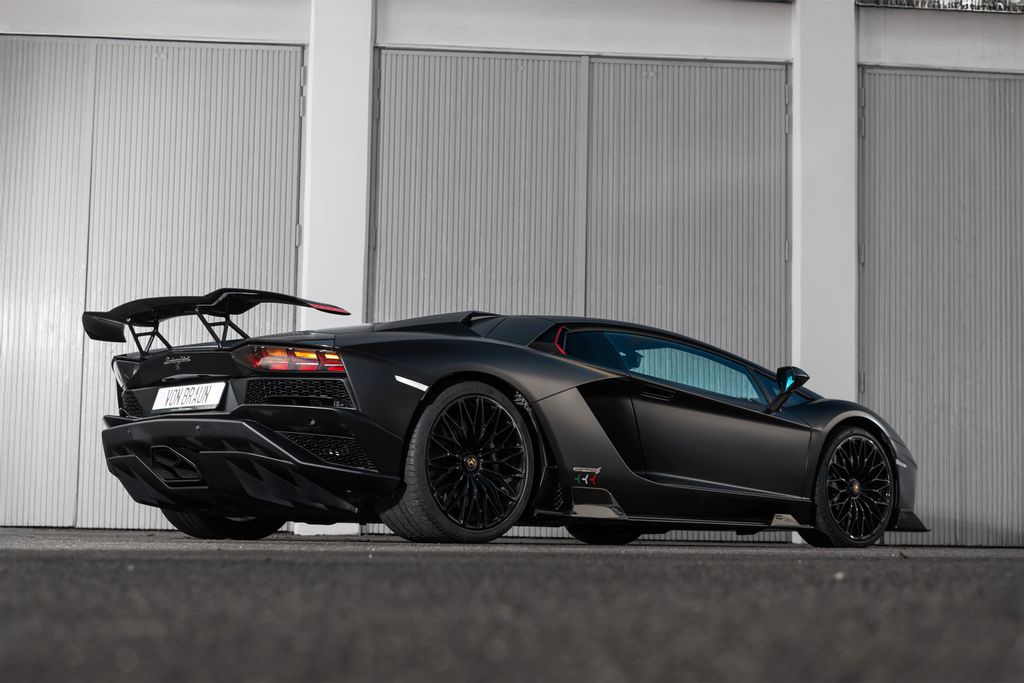 Incredibly beautiful and bold Aventador S LP740-4, wrapped in Nero Nemesis since new, with the original paint in the highly sought-after pearlescent color Balloon White. The interior features two shades of brown, with the seats in Terra Semele. This car has later been fitted with both a carbon fiber kit from Nero Design and an aftermarket exhaust system from Capristo. The wheels are 21" and 20" Dianthus Forged.The car was delivered new in London in 2017 and arrived in Sweden in 2020. It has a complete service history and is delivered freshly serviced by von Braun Sports Cars. The price includes a 1-year von Braun Garanzia Rosso warranty.
