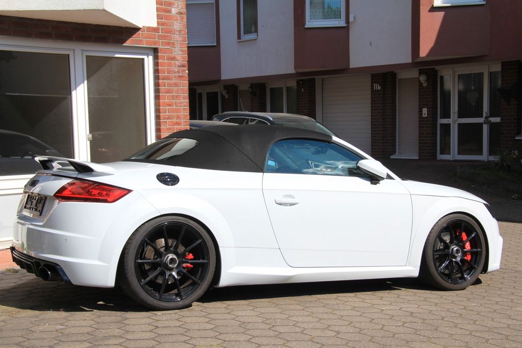 Abbiege- und Allwetterlicht, Adaptives Bremslicht, Airbag Fahrer-/Beifahrerseite, Akustik-Verdeck, Antriebs-Schlupfregelung (ASR), Audi Drive Select, Auspuffendrohr verchromt, AUX-IN-Anschluss, Außenspiegel asphärisch, links, Außenspiegel konvex, rechts, Blinkleuchten LED in Außenspiegel integriert, Bremsanlage mit Rekuperationssystem, Bremsassistent, Einparkhilfe vorn und hinten, akustisch und optisch mit selektiver Anzeige (APS Plus), Einstiegsleisten mit Aluminiumeinlage und Schriftzug, Fahrassistenz-System: Spurhalteassistent (active lane assist), Frontscheibe Verbundglas, Heckflügelspoiler, Heckscheibe heizbar, Isofix-Aufnahmen für Kindersitz an Beifahrersitz, Karosserie: 2-türig, Kombiinstrument digital (virtual cockpit), Komfort-Klimaautomatik 2-Zonen, Kopf-AirbagSystem (Sideguard), Lendenwirbelstützen vorn, elektr. verstellbar, Lenkrad (Sport/Leder - 3-Speichen, unten abgeflacht) mit Multifunktion plus, Motor 2,5 Ltr. - 294 kW 20V TFSI, Multi-Media-Interface MMI Basic / MMI Radio, Parkbremse elektro-mechanisch, Pedale und Fußstütze in Edelstahl, Progressivlenkung, Reifen-Reparaturkit, Reifendruck-Kontrollsystem, Reifenkontroll-Anzeige, RSSportsitze vorn, Schadstoffarm nach Abgasnorm Euro 6, Schalt-/Wählhebelgriff Alcantara / Mikrofaser, Schaltfunktion (Schaltwippen/- tasten) am Lenkrad, Schwellerleisten Sport-Design, Seitenairbag vorn, Sitzheizung vorn, Start/Stop-Anlage, Stoßfänger Sport-Design mit Diffusoreinsatz hinten, Windschott elektr. versenkbar, Wärmeschutzverglasung grün getönt, Überrollbügel Alu-Optik Die obere Beschreibung spiegelt die normale Ausliefererung wieder. Desweiteren wurden von der Firma MTR Performance die Leistung des Motors neu optmiert und der Motor wurde mit neuen Pleuel, Kolben usw. verstärkt. In allem hat das Fahrzeug eine eingetragende Leistung von 560PS und noch zwei weitere Leistungstufen stehen noch zu verfügung bis zu ca.730 PS. Das Fahrwerk ist ein KW Performace V4. Die Keramikbremse wurde von Audi nachträglich im Auftrag verbaut. Alles in allem hat der zusätzliche Umbau über 30000€ gekostet. Die Räder sind Magnesiumfelgen 19" mit 245/35/19. Alles ist eingetragen! Für weitere detailierte Ausführung schreiben oder rufen sie mich an.