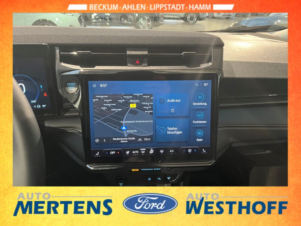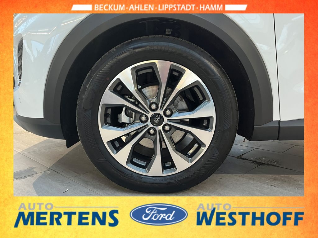 - Weiteres: Ford-Navigationssystem mit Touchscreen, Sync 4, 360-Grad Kamera, LED-Scheinwerfer, adaptive Geschwindigkeitsregelanlage (ACC), Park-Pilot-System vorne + hinten, Key-Free-System, Heckklappe elektrisch + sensorgesteuert, Klimaautomatik, Sitzheizung, Frontscheibe heizbar, Lenkrad heizbar, Induktive Ladestation, Pre-Collision-System, Toter-Winkel-Assistent, Verkehrsschilderkennung, Fernlicht-Assistent, Fahrspur-Pilot, Stau-Assistent mit Stop + Go Funktion, Fahrspur-Assistent, Falschfahrer-Warnfunktion, Ausweich-Assistent, Alufelgen 17-Zoll, Licht + Regensensor, Verglasung hinten abgedunkelt, Winterpaket, Fahrer-Assistenz-Paket, Komfort-Paket, Ford-Garantie-Schutzbrief 3.-4. Jahr / 100.000 km, Farbe: Frost-Weiss