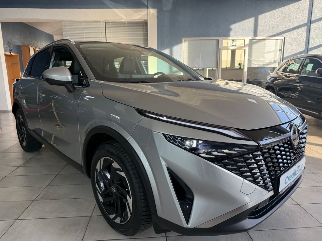 3. Bremsleuchte, Airbag Fahrer-/Beifahrerseite, Ambiente-Beleuchtung, Around View Monitor (360° Umgebungsansicht), Ausstattungs-Paket: Nissan Connect Navigationssystem mit Around View Monitor, Auto-Hold-Funktion, Automatische Fahrlichtschaltung, Außenspiegel elektr. anklappbar, Außenspiegel elektr. verstell- und heizbar, Blinkleuchten LED in Außenspiegel integriert, Dachantenne im Haifischflossen-Design, Dachhimmel hellgrau, Elektr. Bremskraftverteilung (EBD), Fahrassistenz-System: aktiver Spurhalteassistent, mit korrigierendem Bremseingriff, Fahrassistenz-System: Auffahrwarnsystem (Forward Collision Warning, FCW), Fahrassistenz-System: Autonomer Notbrems-Assistent, Fahrassistenz-System: Berganfahr-Assistent, Fahrassistenz-System: Fernlichtassistent, Fahrassistenz-System: Intelligenter Parklenkassistent, Fahrassistenz-System: Moving Object Detection (MOD, Fußgängererkennung und bewegliche Objekterkennung), Fahrassistenz-System: Müdigkeitserkennungs-Sensor, Fahrassistenz-System: Querverkehrs-Assistent Heck (Rear Cross Traffic Alert, RCTA), Fahrassistenz-System: Sicherheitssystem ERA GLONASS mit automatischem Notruf, Fahrassistenz-System: Totwinkel-Assistent, Fahrassistenz-System: Verkehrszeichenerkennung, Fahrmodusschalter, Fensterheber elektrisch vorn + hinten, Gepäck-/Laderaum-Unterteilung (Flexi-Board), Geschwindigkeits-Begrenzeranlage, Geschwindigkeits-Regelanlage (Tempomat) mit Abstandsregelung, Handschuhfach beleuchtet, Heckleuchten LED, Innenraumfilter: Pollenfilter, Innenspiegel mit Abblendautomatik, Instrumentenanzeige TFT-Farbdisplay (12,3 Zoll), Isofix-Aufnahmen für Kindersitz, Karosserie: 5-türig, Klimaautomatik 2-Zonen, Kniepolster Mittelkonsole seitlich, Kofferraumbeleuchtung, Kopf-Airbag-System, Lastenverankerung / Verzurrösen, Lendenwirbelstütze Sitz vorn links, elektr. verstellbar, Lenksäule (Lenkrad) höhen-/längsverstellbar, Leseleuchten vorn und hinten, LM-Felgen, Mild-Hybrid 116 kW (Motor 1,3 Ltr. - 116 kW DIG-T MHEV), Mittelarmlehne hinten mit Getränkehalter, Modellpflege, Multimedia-System Nissan Connect, Navigationssystem, Nebelscheinwerfer LED, Nebelschlussleuchte LED, Notbrems-Warnblinkautomatik, Otto-Partikelfilter (OPF), Parkbremse elektrisch, Radstand 2666 mm, Reifendruck-Kontrollsystem, Rückfahrkamera, Rücksitz geteilt/klappbar, Schadstoffarm nach Abgasnorm Euro 6e, Schalt-/Wählhebelgriff Leder, Scheibenwischer mit Intervallschaltung, Seitenairbag, Seitenairbag vorn mitte (Center-Airbag), Service-System: Amazon Alexa, Sitz vorn links höhenverstellbar, Sitz vorn rechts höhenverstellbar, Sitzbezug / Polsterung: Stoff/Kunstleder, Sonnenblenden mit Spiegel (beleuchtet), Start/Stop-Anlage, Steckdose (12V-Anschluß) im Koffer-/Laderaum, Steckdose (12V-Anschluß) in Mittelkonsole, Touchscreen-Farbdisplay (12,3 Zoll), USB-Anschluss im Fond, USB-Schnittstelle, Verglasung hinten abgedunkelt