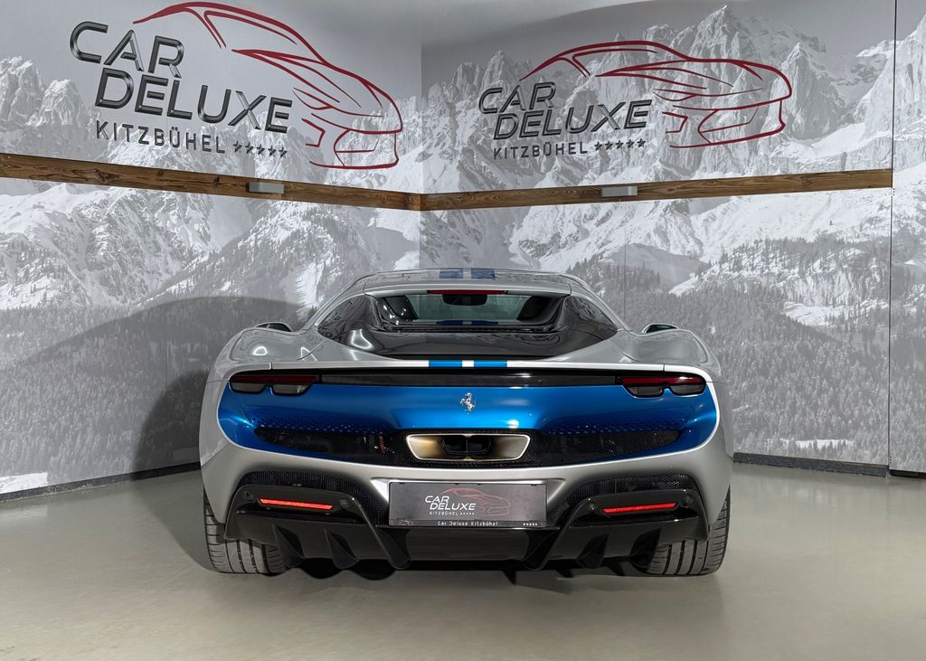 Ferrari 296 GTS - Assetto Fiorano - Rennsportsitze Carbon - Seitenschweller Carbon - Heckdiffusor Carbon - Lenkrad Carbon mit LEDs - Carbon Intarsien Armaturenbrett - 20" Carbon Felgen - Racing Lackierung in Blue Corsa - Netto Export €310.000,00- Exterieur: Argento Nurburg mit Rennstreifen in Blu Corsa