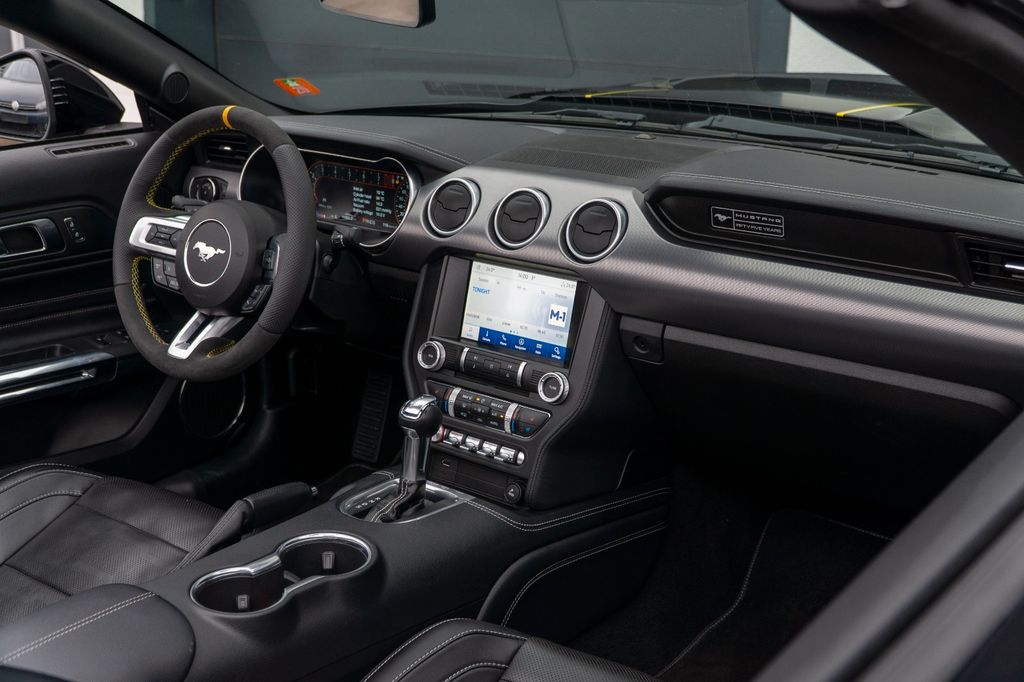 Airbag Fahrer-/Beifahrerseite, Auspuffanlage mit Klappensteuerung, Außenspiegel elektr. verstell- und heizbar, Blinkleuchte in Außenspiegel integriert, Bodenleuchte im Außenspiegel, Bordcomputer, Doppelendrohr Auspuffanlage, Elektr. Bremskraftverteilung (EBD), Elektron. Stabilitäts-Programm (AdvanceTrac), Fahrassistenz-System: Berganfahr-Assistent (Hill-Holder), Fahrassistenz-System: Notbrems-Assistent, Fahrassistenz-System: Spurhalteassistent, Faltverdeck elektrisch, Fensterheber elektrisch hinten, Getriebe Automatik - Typ: 10R80 (10-Stufen), Gurtstraffer, Handbremshebelgriff Leder, Karosserie: 2-türig, Klimaautomatik 2-Zonen, Knieairbag Fahrerseite, Lenkrad heizbar, Line-Lock-System, LM-Felgen, Modellpflege, Motor 5,0 Ltr. - 331 kW Ti-VCT V8 KAT, My Key (2. Fahrzeugschlüssel programmierbar), Nebelscheinwerfer LED, Parkpilotsystem hinten, Pedale Aluminium, Performance-Paket, Reifen-Reparaturkit, Reifendruck-Kontrollsystem, Rückfahrkamera, Schadstoffarm nach Abgasnorm Euro 6, Schadstoffarm nach Abgasnorm Euro 6d-TEMP, Scheinwerfer LED, Sperrdifferential, Stoßfänger hinten Sport-Design mit Diffusor, Stoßfänger Wagenfarbe