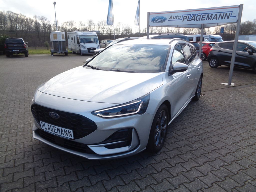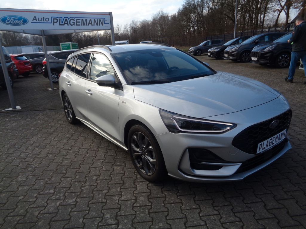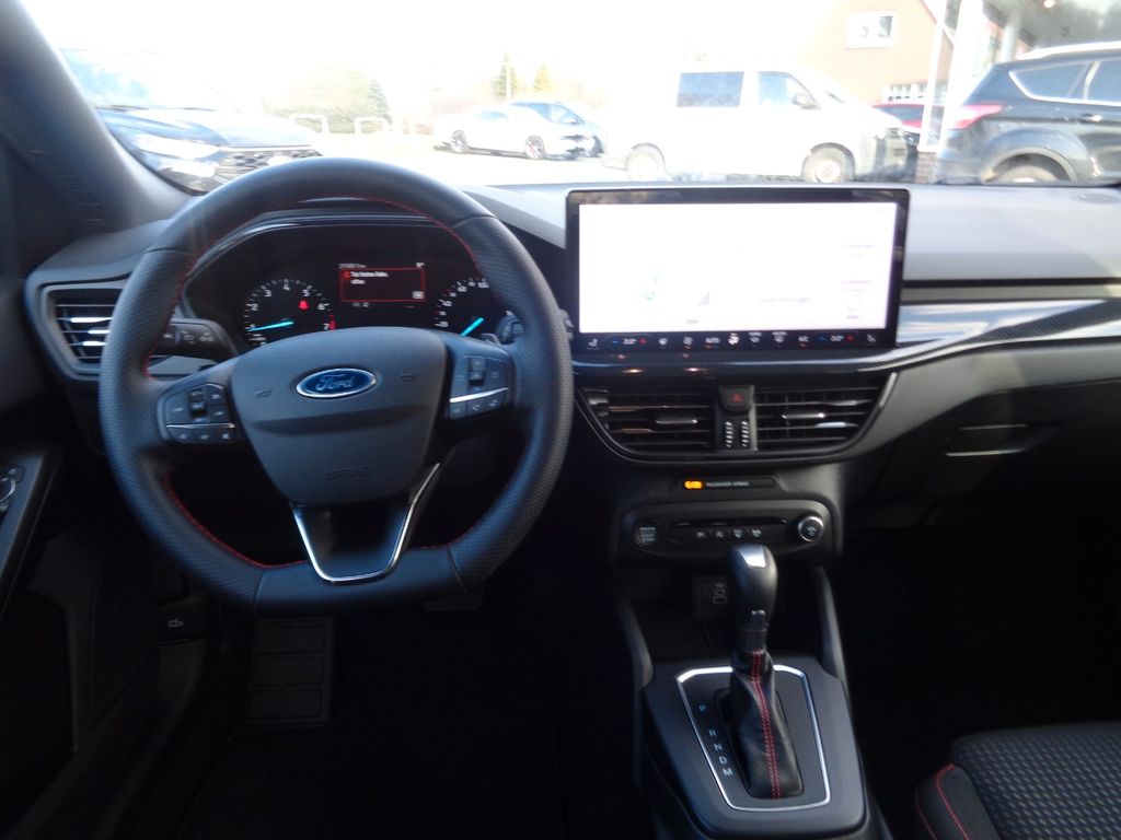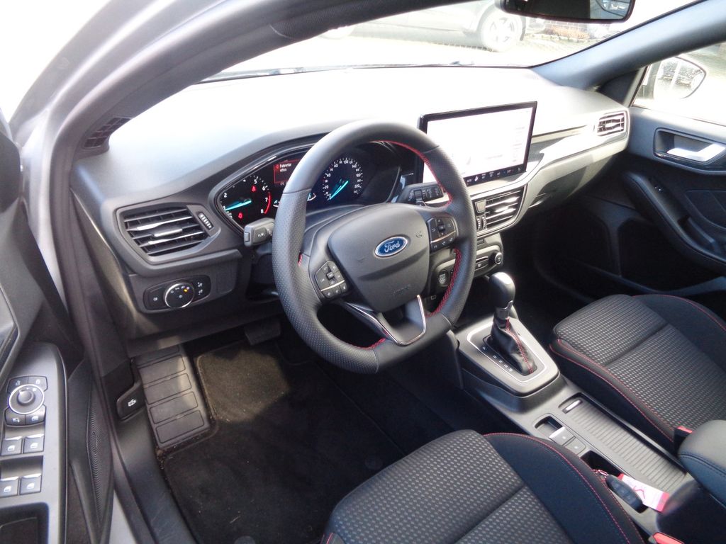 Airbag Beifahrerseite abschaltbar, Antischlupfregelung (ASR), Audio-Navigationssystem Ford SD (mit Ford SYNC 4 und Touchscreen-Farbdisplay), Außenspiegel elektr. anklappbar, Außenspiegel elektr. verstell- und heizbar, Blinkleuchte in Außenspiegel integriert, Body-Styling-Paket, Bord-/Verbrauchscomputer, Dachhimmel Stoff, dunkel, Dachreling schwarz, Dachspoiler Wagenfarbe, Dimmer Instrumentenbeleuchtung, Doppelendrohr Auspuffanlage, Elektr. Bremskraftverteilung, Fahrassistenz-System: Berganfahr-Assistent (Hill-Holder), Fahrassistenz-System: Notbrems-Assistent, Fahrassistenz-System: Post-Collision-System, Fahrassistenz-System: Pre-Collision-System, Fahrassistenz-System: Spurhalteassistent, Farbdisplay (8 Zoll), Farbdisplay für Bordcomputer, Fensterheber elektrisch vorn + hinten mit Komfortschließung, FordPass Connect inkl. eCall, Fußmatten Teppich, Fußmatten Velours - vorn, Gepäckraumabdeckung / Rollo, Getriebe 7-Gang - Doppelkupplungsgetriebe, Innenraumfilter: Staub- und Pollenfilter, Innenspiegel mit Abblendautomatik, Intelligent Protection System (IPS), Intelligenter Geschwindigkeits-Begrenzer, Isofix-Aufnahmen für Kindersitz, Karosserie: 5-türig, Klimaautomatik 2-Zonen, Kopfstützen hinten mechan. verstellbar (3 Stück), Kopfstützen vorn 4-fach verstellbar, Laderaumboden verstellbar, Lenkrad (Sport/Leder, ST), Lenksäule (Lenkrad) höhen-/längsverstellbar, LM-Felgen, Mild-Hybrid 114 kW (Motor 1,0 Ltr. - 114 kW EcoBoost), Mittelkonsole Premium, Modellpflege, My Key (2. Fahrzeugschlüssel programmierbar), Nebelscheinwerfer LED, Parkbremse elektrisch mit Auto-Hold-Funktion, Parkpilotsystem vorn und hinten, Reifen-Reparaturkit, Reifendruck-Kontrollsystem, Rücksitzlehne geteilt/klappbar (60:40), Schadstoffarm nach Abgasnorm Euro 6d, Schalt-/Wählhebelgriff Aluminium, Schalt-/Wählhebelgriff Leder, Schaltpunktanzeige, Scheinwerfer mit abgedunkelten Hintergrund, Scheinwerfer mit Ausschaltverzögerung, Scheinwerfer-Assistent mit Tag-/Nachtsensor, Sitz vorn links höhenverstellbar, Sonnenblende links mit Spiegel, Sonnenblende rechts mit Spiegel, Sport-Fahrwerk, Sportsitze vorn, Start/Stop-Anlage, Steckdose (12V-Anschluß) im Koffer-/Laderaum, Verglasung getönt, Warnanlage für Sicherheitsgurte hinten, Warnanlage für Sicherheitsgurte vorn