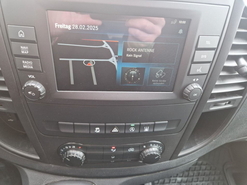 3-Tasten-Fernbedienung für Zentralverriegelung, 3. Bremsleuchte, Adaptives Bremslicht, Airbag Beifahrerseite, Airbag Fahrerseite, Anfahrhilfe (Berganfahr-Assistent), Anhängerkupplung: Elektrik für Anhängersteckdose, Außenspiegel asphärisch, beide, Außenspiegel elektr. verstell- und heizbar, beide, Außentemperaturanzeige, Befestigungsschienen für Dachträger, BlueEfficiency-Paket, Bremsassistent, Design- und Ausstattungslinie PRO, Frontscheibe mit Scheibenantenne, Generator 250 A, Getränkehalter vorn, Gurtstraffer, Handschuhfach abschließbar, Karosserie/Aufbau: Kasten, Karosserie/Aufbau: lang, Kombiinstrument mit Pixel-Matrix-Display, Lastenverankerung / Verzurrösen, Lenkrad (Lenksäule mech. verstellbar), Lenkrad mit Multifunktion inkl. Reiserechner, Mercedes-Benz Notrufsystem, Modellpflege, Motor 2,0 Ltr. - 120 kW CDI KAT, Nebelschlussleuchte, Pro, Radstand 3200 mm, Reifen 205/65 R16C 103/101 T, Schadstoffarm nach Abgasnorm Euro 6 WLTP, Schiebetür Lade-/Fahrgastraum rechts, Sicherheitsgurt-System mit Warnanlage (Fahrer-/Beifahrerseite), Sitzbezug / Polsterung: Stoff, Sitze im Fahrerhaus: Fahrersitz Komfort, Sitze im Fahrerhaus: Fahrersitz mit Lendenwirbelstütze, Stahlfelgen 6,5x17, Verkleidung Fenstersäulen, Verkleidung im Lade-/FG-Raum: Hartfaser halbhoch, Wartungsintervall-Anzeige Assyst, Wärmeschutzverglasung