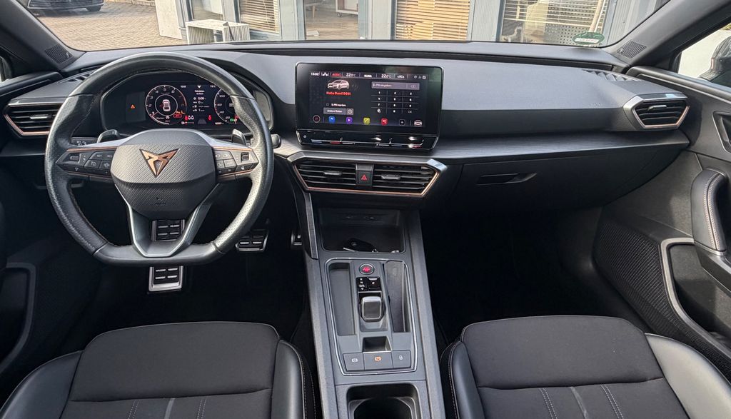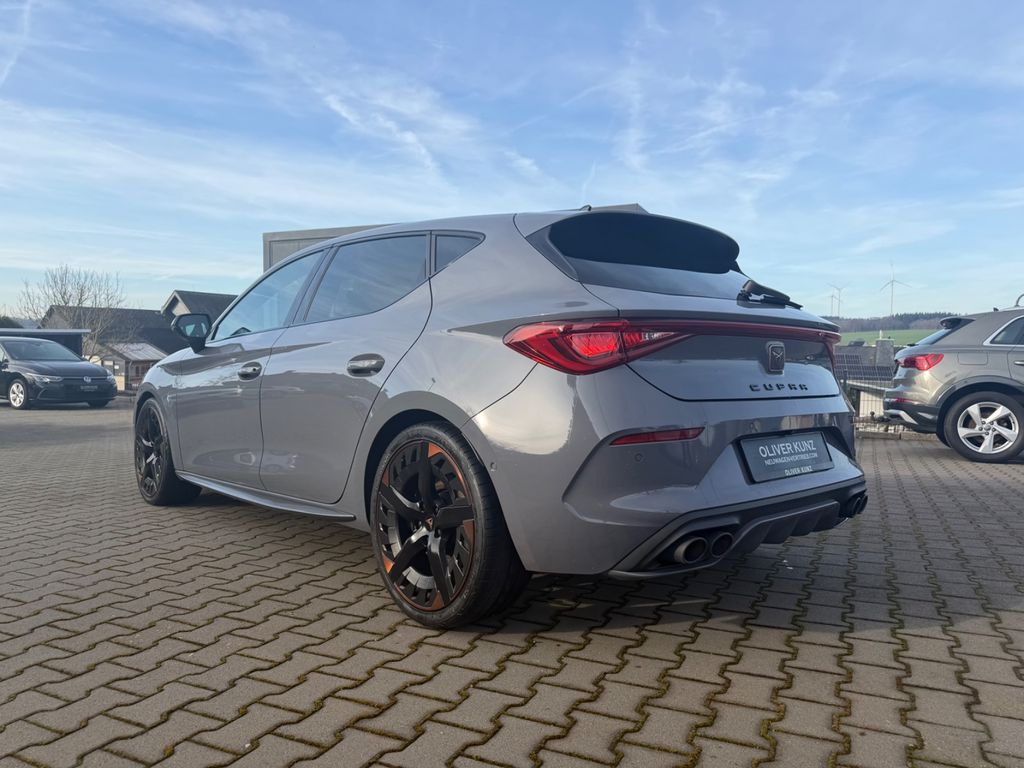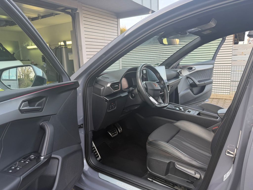Airbag Beifahrerseite abschaltbar, Airbag Fahrer-/Beifahrerseite, Ambiente-Beleuchtung Smart Ambient Light, Antriebs-Schlupfregelung (ASR), Audio-Navigationssystem mit Touchscreen Farbbildschirm, Außenspiegel elektr. verstell-, heiz- und anklappbar mit Spiegelabsenkung und Welcome Light, Blinkleuchten LED in Außenspiegel integriert, Doppeltonhorn, Einstiegsleisten (Aluminium) vorn, beleuchtet, Elektron. Differentialsperre (XDS), Fahrassistenz-System: Adaptive Fahrwerksregelung (DCC), Fahrassistenz-System: Fahrprofilauswahl (CUPRA Drive Profile), Fensterheber elektrisch vorn + hinten mit Komfortschaltung, Fensterzierleisten schwarz hochglänzend, Gepäckraumabdeckung / Rollo, Heckleuchten LED mit dynamischem Blinklicht, Heckleuchten Voll-LED mit dynamischem Lichtband (Infinite Light), Isofix-Aufnahmen für Kindersitz an Rücksitz, Karosserie: 5-türig, Klimaanlage Climatronic 3-Zonen, Kombiinstrument digital (virtual cockpit), Kopf-Airbag-System, Lendenwirbelstütze Sitz vorn links, verstellbar, Lendenwirbelstütze Sitz vorn rechts, verstellbar, Licht- und Sicht-Paket, Mittelkonsole vorn mit Mittelarmlehne, Becherhalter, Ablagebox und Luftausströmer hinten, Mobile Online Dienste Cupra Connect, Motor 2,0 Ltr. - 221 kW 16V TSI, Notrufsystem, Otto-Partikelfilter (OPF), Parkbremse elektrisch, Radioempfang digital (DAB+), Reserverad als Notrad, Rücksitzlehne geteilt/klappbar (1/3-2/3), Schadstoffarm nach Abgasnorm Euro 6d, Seitenairbag, Seitenairbag vorn mitte (Central Airbag), Seitenscheiben hinten und Heckscheibe abgedunkelt, Sitz vorn links höhenverstellbar, Sitz vorn rechts höhenverstellbar, Sitzbezug / Polsterung: Stoff, Sonnenblende links mit Spiegel (beleuchtet), Sonnenblende rechts mit Spiegel (beleuchtet), Sport-Schalensitze vorn mit integrierten Kopfstützen, Start/Stop-Anlage, USB-Ladeanschlüsse (2-fach, Typ C) für 2.Sitzreihe, USB-Schnittstelle vorn (2-fach, Typ C), Verzurrösen Koffer-/Laderaum, Warnanlage für Sicherheitsgurt-System, Wärmeschutzverglasung