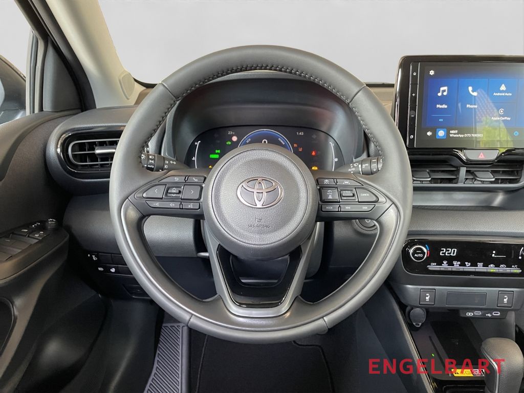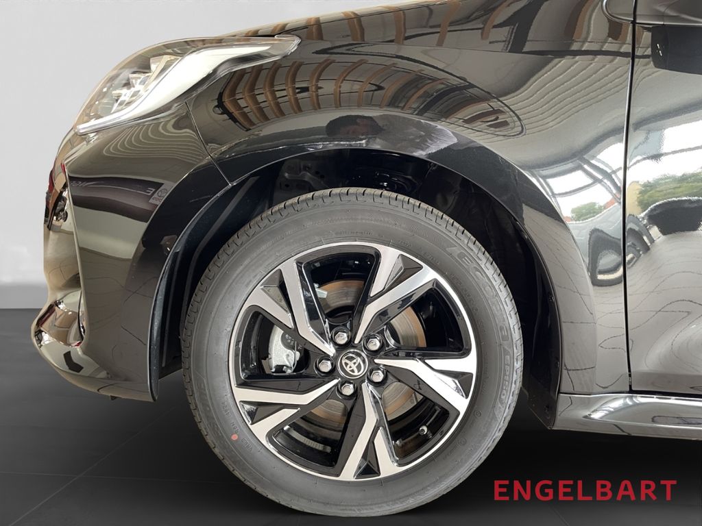 - Weiteres: Reifendruck-Kontrollsystem, Rückfahrkamera, Schalt-/Wählhebelgriff Leder, Scheibenwischer mit Regensensor, Scheinwerfer LED, Reifen-Reparaturkit, Heckleuchten LED, LM-Felgen, Schadstoffarm nach Abgasnorm Euro 6d, Getriebe Automatik stufenlos - Multidrive ECVT, Audiosystem TAS600 (Toyota Smart Connect), Innenraumfilter: Staub- und Pollenfilter mit Aktivkohlefilter, Motor 1,5 Ltr. - 68 kW Hybrid (Systemleistung 85 kW), ConstructionTimeMapping, Airbag Fahrer-/Beifahrerseite, Anti-Blockier-System (ABS), Lenkrad mit Schaltwippen, Tagfahrlicht LED, Seitenairbag vorn, Start-Stop-Knopf, Außenspiegel elektr. verstell- und heizbar, Wegfahrsperre, USB-Schnittstelle, Gepäckraumabdeckung / Rollo, Lenksäule (Lenkrad) verstellbar, Rücksitz geteilt, Aktive Kopfstützen, aktiver Spurhalteassistent (Lenkunterstützung), Ambiente-Beleuchtung vorn (LED), Audiobedienung am Lenkrad, Auffahrwarnsystem (Forward Collision Warning, FCW), Autom. Begleitfunktion der Beleuchtung (Follow me home), Autonome Notbremsfunktion (AEB), Beifahrerairbag abschaltbar, Berganfahrkontrolle (HAC), Blinkleuchte in Außenspiegel integriert, Comfort-Paket, DAB-Tuner (Radioempfang digital), Eco-Anzeige für verbrauchsoptimiertes Fahren, Elektr. Bremskraftverteilung, ESP mit Schlupfregelung (VSC mit TRC), Fahrassistenz-System: Notlenk-Assistent, Fensterheber elektrisch vorn und hinten, Fernlichtassistent (Abblendautomatik Fahrlicht, AHB), Freisprechanlage Bluetooth, Freisprechanlage mit Sprachsteuerung, Gepäckraummatte Kunststoff, Geschwindigkeits-Begrenzeranlage, Gurtwarner hinten, Induktionsladeschale für Smartphone, Innenspiegel mit Abblendautomatik, Isofix-Aufnahmen für Kindersitz, Klimaautomatik, Kreuzungs-Assistent, Kühlergrill unten / oben Pianolack, Lederlenkrad, Lenkrad heizbar, Leseleuchte, Müdigkeitserkennungs-Sensor, Multimedia Display (9,0 Zoll), Nebelscheinwerfer LED, Parkbremse elektrisch (EPB), Pre-Collision-System (PCS), Protection-Paket, Rücksitz klappbar, Seitenairbag vorn und hinten, Servolenkung elektrisch, Sicherheitssystem Toyota Connect mit automatischem Notruf (eCall), Sitzheizung vorn, Sitzhöhenverstellung Fahrersitz, Smartphone-Integration x-connect (Apple CarPlay und Android Auto), Spurhalteassistent, Startanlage Smart-Key, Entry & Drive, Toyota Safety Sense, Verglasung hinten abgedunkelt, Verkehrszeichenerkennung (RSA), Warnanlage für Sicherheitsgurte vorn, Rückfahrassistent mit Bremsunterstützung, Totwinkelwarner, Ausstiegsassistent, Einparkhilfe vorne und hinten, Spurwechselassistent