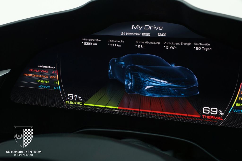 Mit großer Freude bieten wir Ihnen diesen traumhaften Ferrari SF90 mit Assetto Fiorano Paket in Rosso Corsa zum Kauf an. Das Fahrzeug überzeugt neben der Erweiterung des Assetto Fiorano Pakets auch mit dem Carbon-LED Lenkrad und den vollelektrischen Sitzen. Wir freuen uns auf Ihre Kontaktaufnahme!