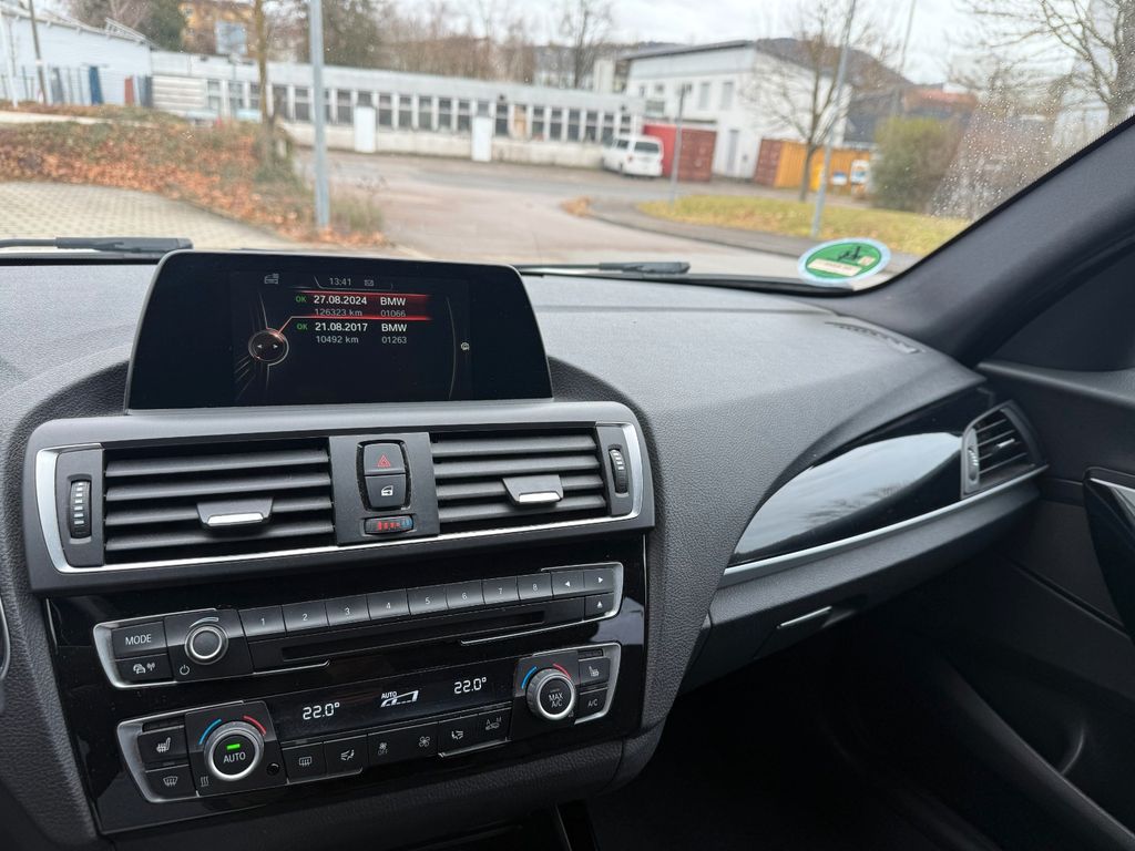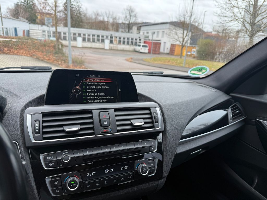 Ablage-Paket, Airbag Beifahrerseite abschaltbar, Airbag Fahrer-/Beifahrerseite, Aktive Differential Bremse (ADB), Anhänger-Stabilisierungs-Programm (ASL), Audiosystem BMW Professional (Radio/CD-Player MP3-fähig), Auspuffblenden verchromt, Außenausstattung: Shadow-Line Hochglanz, Außenspiegel elektr. verstell- und heizbar, Außenspiegel Wagenfarbe, Blinkleuchte in Außenspiegel integriert, Bordcomputer, Bremsassistent, Dachhimmel Anthrazit (BMW Individual), Design- und Ausstattungslinie M Sport, Dynamische Bremsleuchte, Dynamische Tractions Control (DTC), Fahrassistenz-System: Anfahr-Assistent, Fahrassistenz-System: Fahrerlebnisschalter, Fensterheber elektrisch hinten, Freisprecheinrichtung Bluetooth mit USB-/Audio-Schnittstelle, Frontscheibe Verbundglas, Fußmatten Velours, Heckleuchten LED, Heckscheibenwischer, Isofix-Aufnahmen für Kindersitz an Rücksitz, Karosserie: 5-türig, Kopf-Airbag-System vorn, Lenkrad (Sport/Leder M-Technic) mit Multifunktion, Lenksäule (Lenkrad) mechan. verstellbar, Licht-Paket, LM-Felgen, Motor 2,0 Ltr. - 110 kW 16V Turbodiesel, Park-Distance-Control (PDC), Reifendruck-Kontrollsystem, Rücksitzlehne geteilt/klappbar, Schadstoffarm nach Abgasnorm Euro 6, Schalt-/Wählhebelgriff Leder (Walknappa), Schaltpunktanzeige, Scheibenwaschdüsen heizbar, Seitenairbag vorn, Service-System: Intelligenter Notruf inkl. TeleServices, Sitzausstattung: 5-Sitzer, Sitzbezug / Polsterung: Stoff Hexagon / Alcantara, Sport-Fahrwerk (M-Technic), Sportsitze vorn, Start-Stop-Knopf, Start/Stop-Anlage (Funktion), Steckdose (12V-Anschluß) zusätzlich, Warndreieck, Wärme-/Sonnenschutzverglasung kombiniert (hinten abgedunkelt)