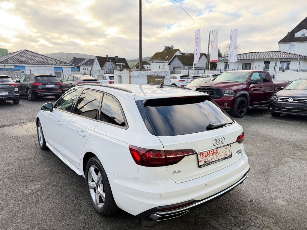 Airbag Beifahrerseite abschaltbar, Allradkupplung, Audi connect (Notruf- und Assistance-System), Audi Drive Select, Außenspiegel Wagenfarbe, Blinkleuchten LED in Außenspiegel integriert, Dachhimmel Stoff, Dachreling schwarz, Einstiegsleisten mit Aluminiumeinlage, Fahrassistenz-System: City-Notbremsfunktion (Audi pre sense City), Fensterzierleisten schwarz, Frontscheibe Akustikglas, Funkschlüssel, Fußmatten Velours, Geschwindigkeits-Begrenzeranlage, Innenausstattung: Dekoreinlagen Akzentteile in der Armaturentafel schwarz matt, Innenausstattung: Dekoreinlagen Diamantlack silbergrau, Isofix-Aufnahmen für Kindersitz, Karosserie: 4-türig, Klimaautomatik, Kopf-Airbag-System (Sideguard), Kraftstofftank: 58 Ltr., LM-Felgen, Mild-Hybrid 150 kW (Motor 2,0 Ltr. - 150 kW 16V TDI), Modellpflege, Multi-Media-Interface MMI Basic Plus / MMI Radio Plus, Nichtraucher-Paket, Radioempfang digital (DAB), Reifen-Reparaturkit, Reifendruck-Kontrollsystem, Rücksitzlehne geteilt/klappbar (40:20:40), Schadstoffarm nach Abgasnorm Euro 6d, Scheibenwaschdüsen heizbar, SCR-System (AdBlue-Technologie), Seitenairbag vorn, Sitzbezug / Polsterung: Stoff Index, Sitze vorn manuell einstellbar, Standard-Fahrwerk, Start/Stop-Anlage, Stoßfänger Ausführung: advanced, Uni-Lackierung, Universal-Schnittstelle Bluetooth, Wendeladeboden (Ladeboden)
