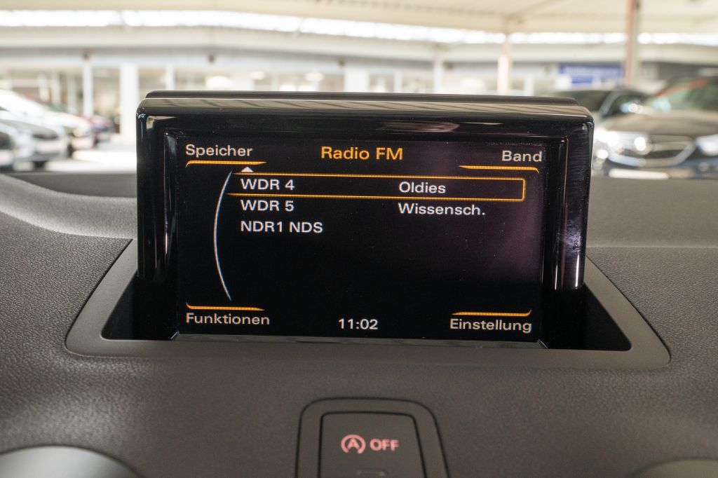 - Radio: MMI Radio - integriertes MMI-Bedienkonzept mit abgesetztem 6,5-Zoll-Farbdisplay und Car-Menu - CD-Laufwerk und SDHC-Speicherkartenleser (bis 32 GB), jeweils MP3-, WMA- und AAC-fähig, sowie AUXIN Anschluss - 50 Stationsspeicher mit dynamischer Senderliste, Empfangsbereich FM (UKW) und AM (MW) inklusive Phasendiversity und geschwindigkeitsabhängige Lautstärkeanpassung - P-Memo im Fahrbetrieb - 8 Passivlautsprecher vorn und hinten, Gesamtleistung 80 Watt