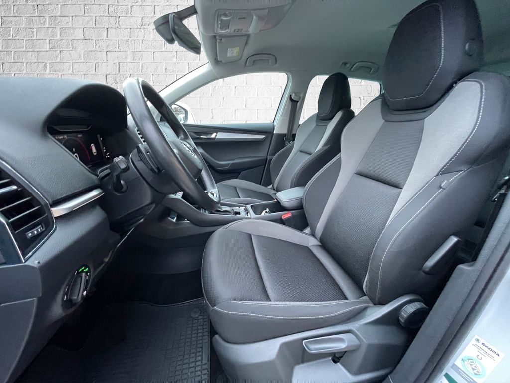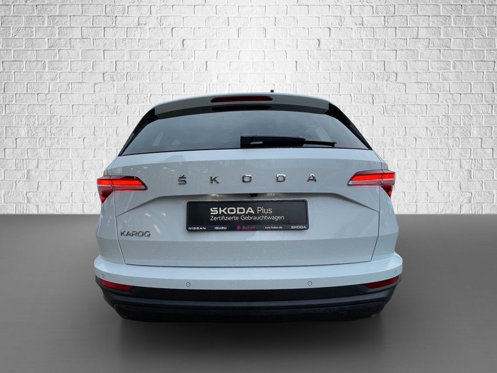 Dieser gepflegte SKODA Karoq aus 2023 präsentiert sich in elegantem Weiß-Metallic und überzeugt mit nur einem Vorbesitzer sowie lückenloser Servicehistorie. Der sparsame Dieselmotor mit 116 PS und Automatikgetriebe bietet Ihnen angenehmen Fahrkomfort bei gleichzeitig niedriger Umweltbelastung (Euro 6d). Die umfangreiche Ausstattung umfasst ein Navigationssystem, digitales Cockpit und ein modernes Infotainmentsystem mit Apple CarPlay, Android Auto und DAB-Radio. Für zusätzlichen Komfort sorgen die 2-Zonen-Klimaautomatik, beheizbare Sitze vorne und hinten sowie eine beheizte Frontscheibe. Die LED-Scheinwerfer, Einparksensoren vorne und hinten mit Rückfahrkamera sowie zahlreiche Fahrassistenzsysteme machen jede Fahrt sicher und entspannt. Als echter Familien-SUV bietet der Karoq praktische Details wie Isofix-Befestigungen und eine Gepäckraumtrennung.- Erstregistrierung 2023 mit nur einem Vorbesitzer
