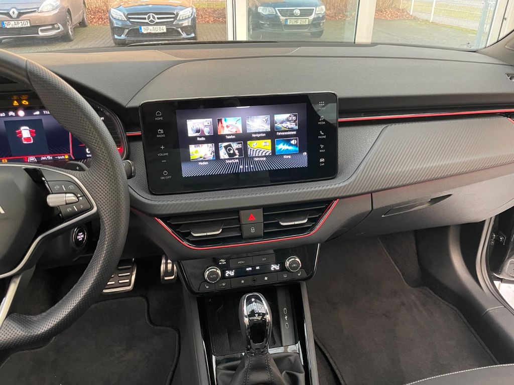 3. Bremsleuchte LED, 8 Lautsprecher, Ablagetasche an Vordersitzlehnen, Airbag Beifahrerseite abschaltbar, Airbag Fahrer-/Beifahrerseite, Antriebs-Schlupfregelung (ASR), Außenspiegel schwarz lackiert, Blinkleuchten LED in Außenspiegel integriert, Bremsassistent, Bremsenergierückgewinnung, Dachhimmel schwarz, Edelstahlpedale Sportdesign, Einparkhilfe hinten, Elektr. Bremskraftverteilung (EBV), Elektron. Differentialsperre (EDS), Elektron. Querdifferentialsperre (XDS), Fahrassistenz-System: Auffahrwarnsystem mit City-Notbremsfunktion (Frontradar-Assistent), Fahrassistenz-System: Berganfahr-Assistent (Hill-Holder), Fahrassistenz-System: Dynamischer Fernlichtassistent (Dynamic Light Assist), Fahrassistenz-System: Einschaltautomatik für Fahrlicht (Fahrlichtassistent), Fahrassistenz-System: Fahrprofilauswahl, Fahrassistenz-System: Multikollisionsbremse (Multi Collision Brake), Fahrassistenz-System: Müdigkeitserkennung, Fahrassistenz-System: Verkehrszeichenerkennung, Fensterheber elektrisch vorn + hinten, Freisprechanlage Telefon mit Bluetooth, Frontkamera, Gepäckraumabdeckung / Rollo, Gepäcksicherung / Gepäckbefestigung (Cargo-Elemente), Handschuhfach beleuchtet, Heckleuchten LED mit dynamischem Blinklicht, Heckscheibe heizbar, Infotainment-Paket Bolero, Infotainment-System mit 8,2" Display, Innenraumfilter: Staub- und Pollenfilter, Innenspiegel mit USB-Anschluss (Typ C), Interieur-Design-Paket Monte Carlo, Isofix-Aufnahmen für Kindersitz an Beifahrersitz, Isofix-Aufnahmen für Kindersitz an Rücksitz, Karosserie: 5-türig, Kennzeichenbeleuchtung LED, Klimaanlage Climatronic 2-Zonen, Kofferraumbeleuchtung, Kopf-Airbag-System, Lendenwirbelstütze Sitz vorn links, Lendenwirbelstütze Sitz vorn rechts, Lenkrad (Sport/Leder - 3-Speichen, unten abgeflacht) mit Multifunktion und Schaltfunktion, Lenkrad heizbar, Lenksäule (Lenkrad) verstellbar (vertikal / axial), Licht- und Sicht-Paket Plus, Lichtassistent (Coming Home, Leaving Home), LM-Felgen, Matrix-LED-Scheinwerfer, Mittelarmlehne hinten, Modellpflege, Motor 1,5 Ltr. - 110 kW 16V TSI ACT, Nebelscheinwerfer mit Abbiegelicht, Netzprogramm im Kofferraum, Notrufsystem, Open-Sky-Paket, Otto-Partikelfilter (OPF), Panoramadach fest (Glas), Phonebox, Radioempfang digital (DAB+), Radstand 2651 mm, Reifen-Reparaturkit, Reifendruck-Kontrollsystem, Rückfahrkamera, Rücksitzlehne geteilt/klappbar (1/3-2/3), Schadstoffarm nach Abgasnorm Euro 6e, Schalt-/Wählhebelgriff Leder, Schriftzug schwarz, Schwellerabdeckung / -verkleidung schwarz glänzend, Seitenairbag vorn, Seitenscheiben hinten und Heckscheibe abgedunkelt (SunSet), Service-System: Remote Services, Sitz vorn links höhenverstellbar, Sitz vorn rechts höhenverstellbar, Sitzbezug / Polsterung: Monte Carlo, Sonnenblende links mit Spiegel, Sonnenblende rechts mit Spiegel, Start/Stop-Anlage, Steckdose (12V-Anschluß) im Koffer-/Laderaum, Stoßfängerabdeckung vorn und hinten, schwarz glänzend, Textilfussmatten, Türgriffe außen Wagenfarbe, USB-Ladeanschlüsse (2-fach, Typ C) für 2.Sitzreihe, USB-Schnittstelle vorn (2-fach, Typ C), Verzurrösen Koffer-/Laderaum, Wireless SmartLink
