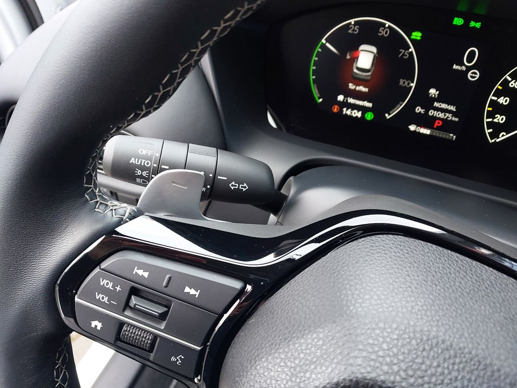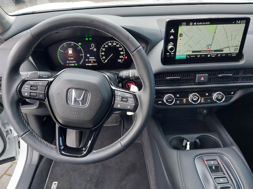 8 Lautsprecher, Airbag Beifahrerseite abschaltbar, Aktive Kopfstützen vorn, Ambiente-Beleuchtung Türverkleidung vorn, Anzeige für Reifendruck im Display, Audiosystem: Radio/MP3-Player, Ausschaltverzögerung für Innenbeleuchtung, Autom. Begleitfunktion der Beleuchtung (Coming Home, Leaving Home), Automatische Fahrlichtschaltung / Lichtsensor, Außenspiegel asphärisch, links, Außenspiegel elektr. anklappbar, Außenspiegel elektr. verstell- und heizbar, beide, Außenspiegel mit Bordsteinautomatik, rechts, Bremsassistent, Bremsenergierückgewinnung (Rekuperationssystem), Brillenhalter im Dachhimmel integriert, Dachantenne im Haifischflossen-Design, Dachspoiler, Einparkhilfe vorn und hinten, Elektr. Bremskraftverteilung, Elektromotor 135 kW (Hybridantrieb), Fahrassistenz-System: Auspark-Assistent, Fahrassistenz-System: Bergabfahrhilfe (HDA), Fahrassistenz-System: Berganfahrhilfe, Fahrassistenz-System: Fahrprofilauswahl (Drive Mode), Fahrassistenz-System: Fernlichtassistent (HSS), Fahrassistenz-System: Intelligente Geschwindigkeitsanpassung (Tempomat) mit Abstandsregelung I-ACC, Fahrassistenz-System: Kollisionswarnsystem mit Bremseingriff und Beschleunigungskontrolle (LSBC), Fahrassistenz-System: Kollisionswarnsystem mit Bremseingriff und Fußgängererkennung (CMBS), Fahrassistenz-System: Müdigkeits-Warner (Driver Attention Monitor), Fahrassistenz-System: Sicherheitssystem mit automatischem Notruf (ERA GLONASS / eCall), Fahrassistenz-System: Spurhalteassistent (LKAS / LDW), Fahrassistenz-System: Spurverlassenswarnung (Lane Departure Warning, LDW), Fahrassistenz-System: Stauassistent (LSF), Fahrassistenz-System: Totwinkel-Assistent, Fahrassistenz-System: Verkehrszeichenerkennung, Fensterheber elektrisch vorn und hinten, mit Auf-/Ab-Automatik, Freisprecheinrichtung (Bluetooth) mit Sprachsteuerung, Fußmatten, Gepäckraumabdeckung / Rollo, Getriebe Automatik stufenlos - ECVT, Getränkehalter hinten, Getränkehalter vorn, Gurtstraffer, Head-up-Display, Heckleuchten LED, Hybrid 135 kW (Motor 2,0 Ltr. - 105 kW), Infotainment-System: Honda Connect mit 9" Touchscreen / Navigationssystem / Internetbasierende Dienste / DAB-Tuner, Innenraumfilter: Pollenfilter, Innenspiegel mit Abblendautomatik, Intelligenter Geschwindigkeits-Begrenzer (ISL), Isofix-Aufnahmen für Kindersitz, Karosserie: 5-türig, Klimaautomatik 2-Zonen, Knieairbag Fahrerseite, Kombiinstrument Digitalanzeige 7 Zoll, Kopf-Airbag-System, Kühlergrill mit vertikalen Lamellen, Lendenwirbelstütze Sitz vorn links, elektr. verstellbar, Lenksäule (Lenkrad) höhen-/längsverstellbar, Leseleuchten hinten, Leseleuchten vorn, Leuchtweitenregelung automatisch, LM-Felgen, Mittelarmlehne hinten, Motorsound-System (Acoustic Vehicle Alerting System, AVAS), Multifunktion für Lenkrad, Nebelschlussleuchte, Notbremssignal, Otto-Partikelfilter (OPF), Parkbremse elektrisch, Radstand Standard, Reifen-Reparaturset, Rückfahrkamera, Rücksitzlehne geteilt/klappbar, Schadstoffarm nach Abgasnorm Euro 6e, Scheinwerfer LED, Seitenairbag hinten, Seitenairbag vorn, Seitenairbag vorn mitte (Center-Airbag), Sitz vorn links höhenverstellbar, Sitzbezug / Polsterung: Stoff, Sitzheizung vorn, Smartphone Schnittstelle (Apple CarPlay & Android Auto), Sonnenblenden mit Make-up-Spiegel, Sonnenblenden mit Spiegel (beleuchtet), Steckdose (12V-Anschluß) im Koffer-/Laderaum, Steckdose (12V-Anschluß) in Armaturentafel, Stoßfänger Wagenfarbe, Türgriffe außen Wagenfarbe, USB-Ladeanschluß vorn, USB-Schnittstelle, Verzurrösen Koffer-/Laderaum