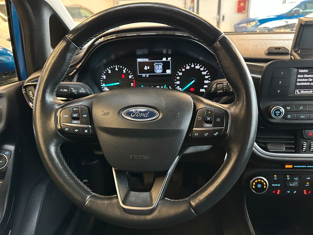 Airbag Beifahrerseite abschaltbar, Außenspiegel elektr. verstell- und heizbar, Außenspiegel Wagenfarbe, Blinkleuchte in Außenspiegel integriert, Bord-/Verbrauchscomputer, Cool & Sound-Paket 2, Dachspoiler Wagenfarbe, Easy-Driver-Paket, Elektr. Bremskraftverteilung (EBD), Energierückgewinnung (Smart Regenerative Charging), Fahrassistenz-System: Berganfahr-Assistent (Hill-Holder), Fahrassistenz-System: Notbrems-Assistent, Fahrassistenz-System: Spurhalteassistent, Fußmatten Velours - vorn, Getriebe 6-Gang - Typ: 6MX65, Innenraumfilter: Staub- und Pollenfilter, Intelligent Protection System (IPS), Isofix-Aufnahmen für Kindersitz, Karosserie: 5-türig, Kopfstützen hinten mechan. verstellbar (3 Stück), Kühlergrill schwarz, Lackierung Blazer-Blau uni, Lenksäule (Lenkrad) höhen-/längsverstellbar, Mittelkonsole, Motor 1,0 Ltr. - 74 kW EcoBoost KAT, My Key (2. Fahrzeugschlüssel programmierbar), Nebelscheinwerfer mit statischem Abbiegelicht, Otto-Partikelfilter (OPF), Reifen-Reparaturkit, Reifendruck-Kontrollsystem, Rücksitz geteilt, Rücksitzlehne klappbar, Schadstoffarm nach Abgasnorm Euro 6, Schadstoffarm nach Abgasnorm Euro 6d-TEMP, Scheinwerfer mit Ausschaltverzögerung, Scheinwerfer-Assistent mit Tag-/Nachtsensor, Sitz vorn links höhenverstellbar, Sonnenblende links mit Spiegel, Sonnenblende rechts mit Spiegel, Stahlfelgen 6x15, Stoßfänger Wagenfarbe, Türgriffe außen Wagenfarbe, Verglasung getönt, Warnanlage für Sicherheitsgurte hinten