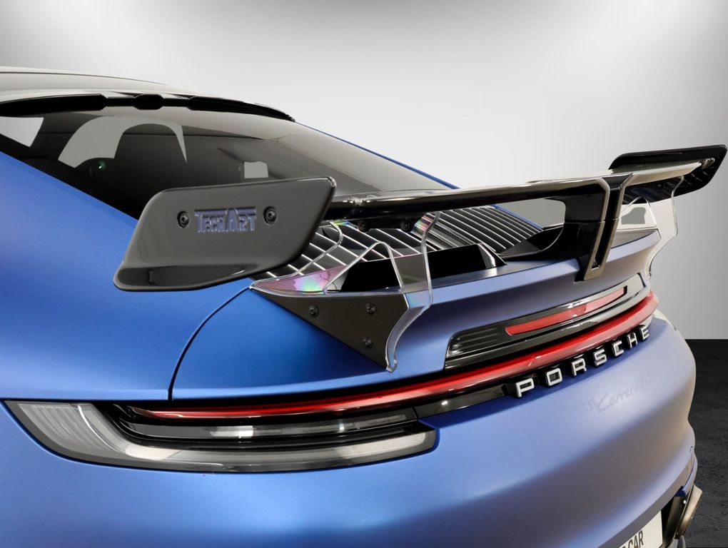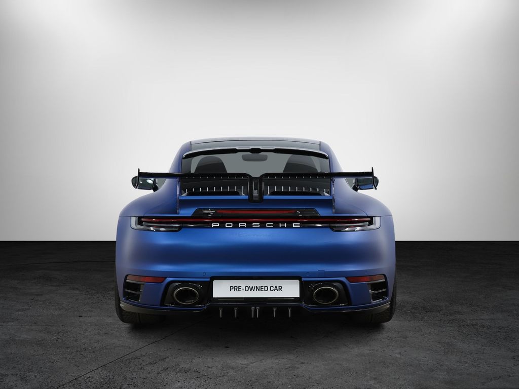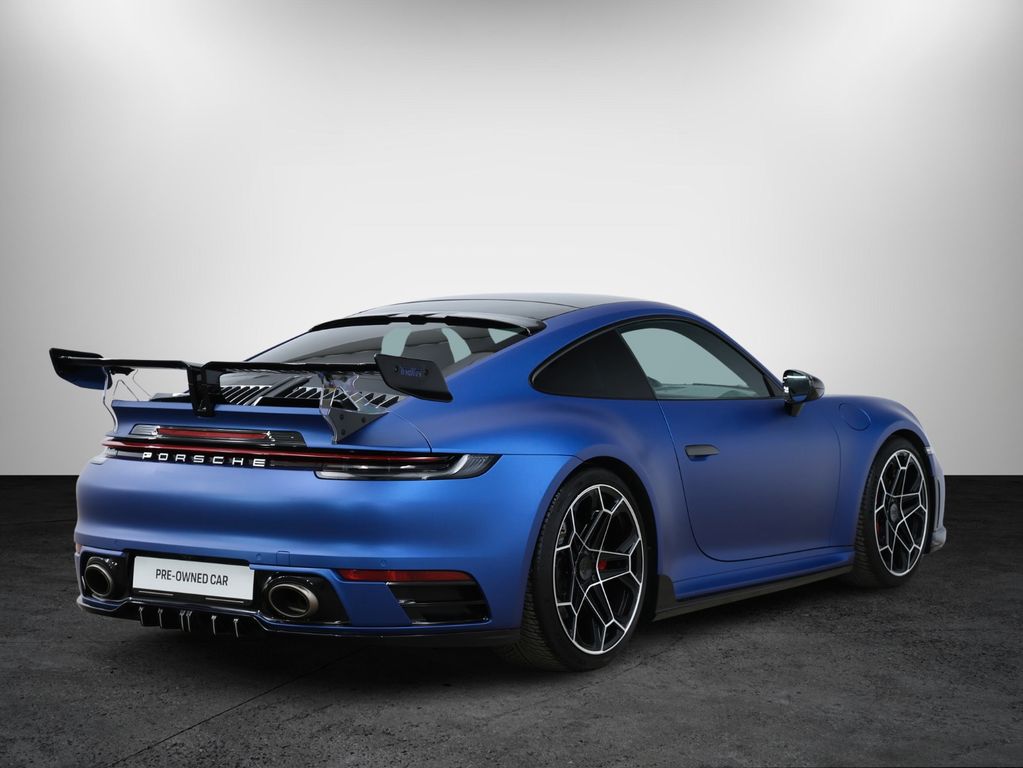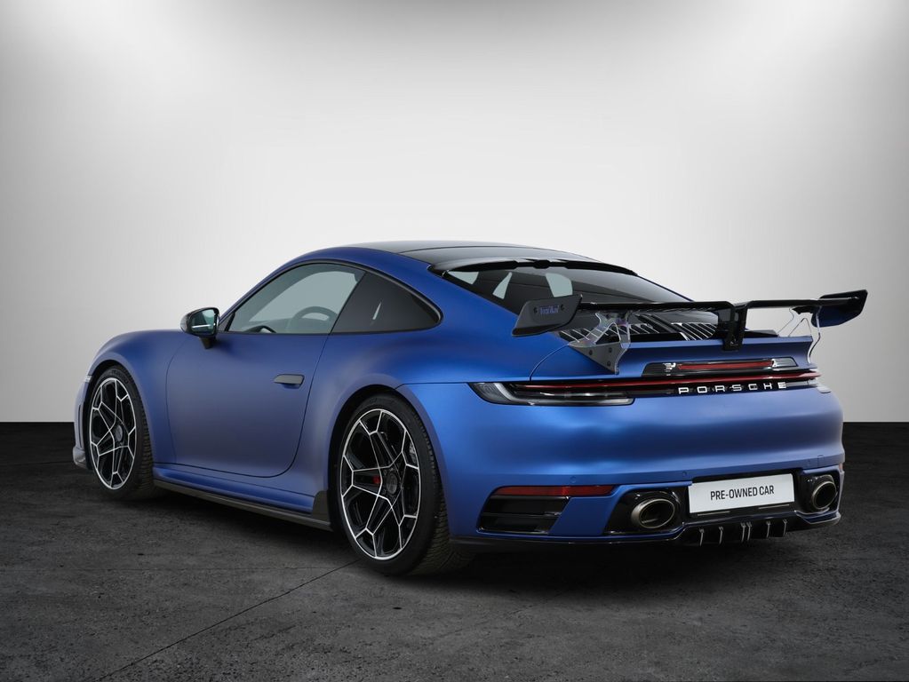 Aero-Kit Turbo schwarz lackiert (Hochglanz), Außen-/Innenspiegel mit Abblendautomatik und Regensensor, Fahrassistenz-System: Park-Assistent vorn und hinten inkl. Rückfahrkamera, Fahrassistenz-System: Spurwechselassistent, Frontscheibe mit Bandfilter oben, Fzg. ohne Modellbezeichnung, Kopfstützen vorn mit Porschewappen, Lenkrad (GT Sport - Leder) mit Schaltfunktion, LM-Felgen vorn/hinten: 8,5x20 / 11,5x21 (Sport RS Spyder Rad), Matrix-LED-Scheinwerfer inkl. Porsche Dynamic Light System Plus (PDLS+), Reifen-Reparaturkit, Schiebedach elektrisch (Glas), Servolenkung Plus (geschwindigkeitsabhängig), Sitzbelüftung vorn, Sitzheizung vorn, Sound-System BOSE, Sport-Auspuffanlage, Endrohre schwarz, Sport-Chrono-Paket, Sportsitze vollelektrisch (14-Wege) inkl. Memory-Paket, Vehicle-Tracking-System Plus (PVTS Plus), Verglasung hinten abgedunkelt (Privacyverglasung)
