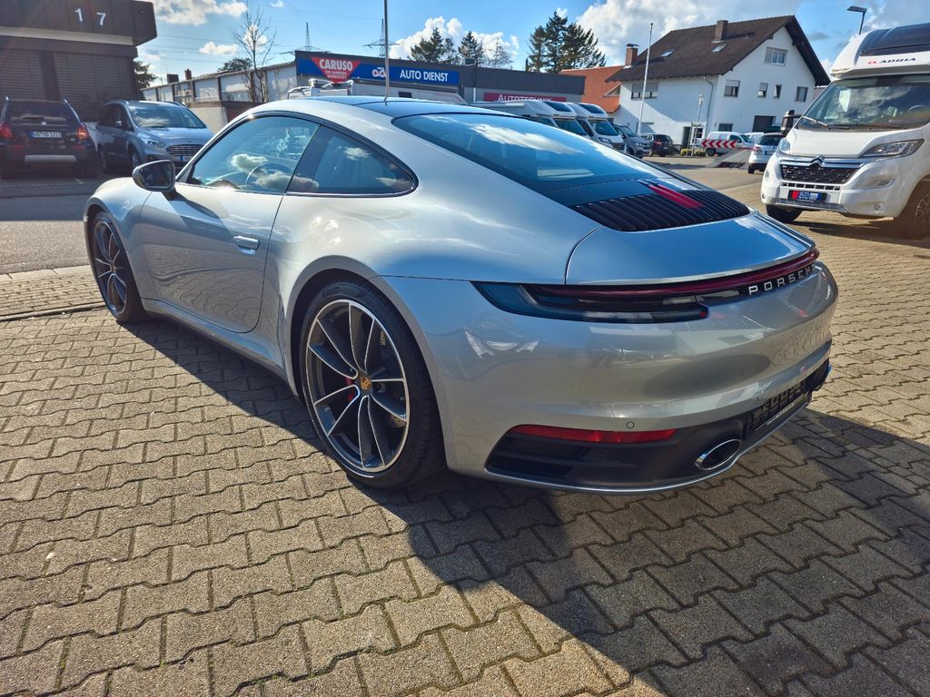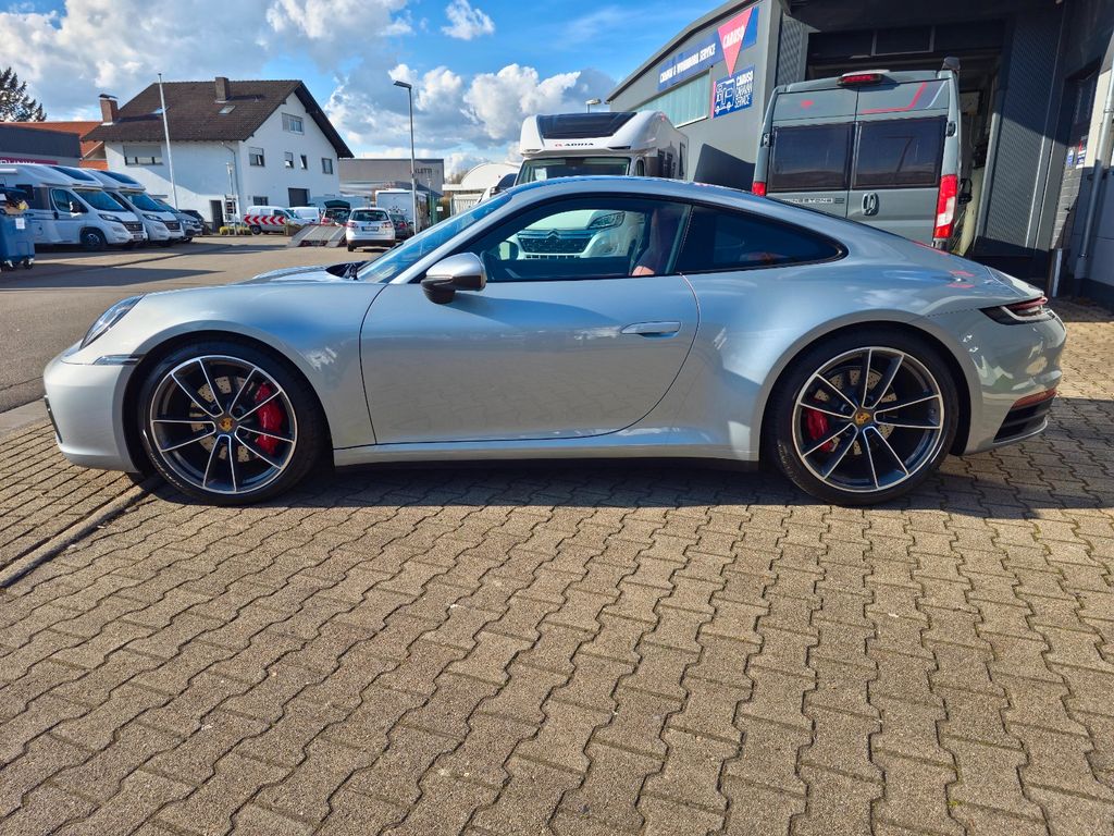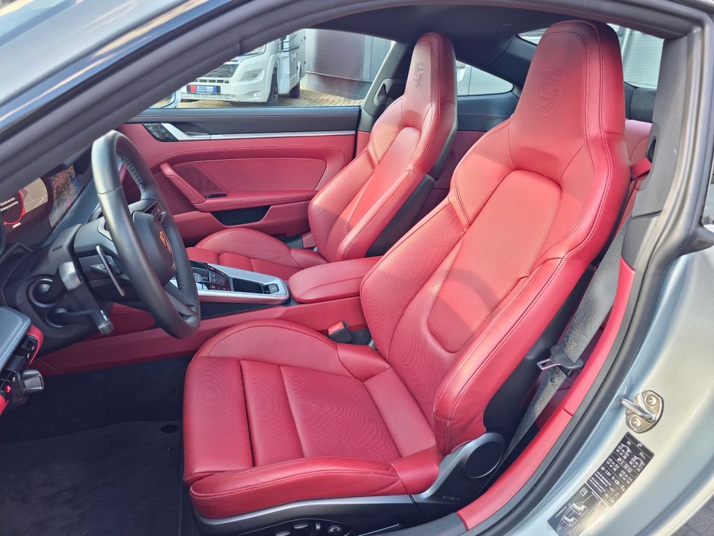 Airbag Fahrer-/Beifahrerseite, Antriebsart: Heckantrieb, Außenspiegel asphärisch, links, Außenspiegel elektr. verstell- und heizbar, beide, Blinkleuchten LED, Bremssättel Rot lackiert, Connect Plus (Bluetooth, Apple CarPlay, WLAN, Vehicle-Tracking-System), Dachhimmel Stoff, Diebstahl-Warnanlage mit Innenraumüberwachung, Drehzahlmesser, Einschaltautomatik für Fahrlicht, Einstiegsblenden mit Modellbezeichnung (Aluminium), Fahrassistenz-System: Berganfahr-Assistent (Hill-Holder), Fahrassistenz-System: Kollisionswarnsystem mit Bremseingriff und Fußgängererkennung, Fußmatten, Getriebe 8-Gang - Doppelkupplungsgetriebe (PDK), Getränkehalter, Hauptscheinwerfer LED, Heckleuchten LED, Heckscheibe heizbar, Heckspoiler, Innenausstattung: Leder, Serienlederfarbe, Innenraumfilter: Aktivkohlefilter (Geruchsfilter), Isofix-Aufnahmen für Kindersitz an Beifahrersitz, Karosserie: 2-türig, Keyless Drive, Kleiderhaken Sitzrückenlehne Leder, Klimaautomatik 2-Zonen, Kopf-Airbag-System Porsche Side Impact Protection System (POSIP), Kopf-Schulter-Airbag vorn (Thoraxbag), Lenkrad (Sport/Glattleder, 3-Speichen) mit Multifunktion, Motor 3,0 Ltr. - 331 kW KAT, Otto-Partikelfilter (OPF), Parkbremse elektrisch, Porsche Active Suspension Management (PASM), Porsche Communications Management (PCM) inkl. Online - Navigationsmodul, Porsche Torque Vectoring Plus (PTV Plus), Radioempfang digital (DAB+), Reifendruck-Kontrollsystem, Schadstoffarm nach Abgasnorm Euro 6d, Schriftzug Modellreihe, Schwellerabdeckung / -verkleidung lackiert, Sport Taste, Start/Stop-Anlage, Turbo, Vehicle-Tracking-System (PVTS), Verglasung getönt
