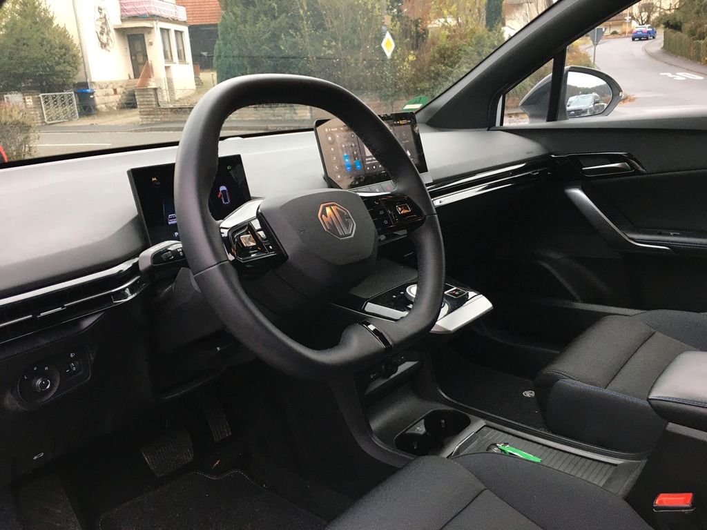 Weitere Ausstattung:3 USB-Anschlüsse zusätzlich, 4 Lautsprecher, Airbag Beifahrerseite abschaltbar, Airbag Fahrer-/Beifahrerseite, Antischlupfregelung (ASR), Automatische Fahrlichtschaltung / Lichtsensor, Außenspiegel anklappbar, Außenspiegel heizbar, Bluetooth-Schnittstelle, Bremsassistent (EBA), Einparkhilfe hinten, Elektromotor 125 kW (cont. 54 kW), Fahrassistenz-System: Spurverlassenswarnung (LDW), Fahrassistenz-System: Stauassistent (TJA), Fensterheber elektrisch hinten, Gepäckraumbeleuchtung, Heckklappe mit Spoiler integriert, Heckleuchten LED, Heckscheibenwischer, HV-Batterie 51 kWh, Innenausstattung: schwarz, Instrumentenanzeige Farbdisplay, 7 Zoll, Isofix-Aufnahmen für Kindersitz an Rücksitze (inkl. i-Size-Kindersitze), Karosserie: 5-türig, Klimaautomatik, Kopf-Airbag-System vorn, Kopf-Schulter-Airbag vorn, Ladekabel mit Typ 2-Stecker (16 A), Lenkrad mit Multifunktion, Lenksäule (Lenkrad) verstellbar, Metallic-Lackierung Diamond Red, Nebelschlussleuchte, On-Board-Ladegerät (bis 6,6 kW), Radioempfang digital (DAB+), Reifen-Reparaturset, Rücksitzlehne geteilt/klappbar (60:40), Seitenairbag vorn, Service-System: MG iSmart-Lite-System, Sitz vorn links verstellbar (6-fach), Sitz vorn rechts verstellbar (4-fach), Sitzbezug / Polsterung: Stoff, Smartphone Schnittstelle (Apple CarPlay & Android Auto), Alu-Felge 17", Steckdose (12V-Anschluß), Vehicle-to-Load Stecker (V2L), Verglasung getönt