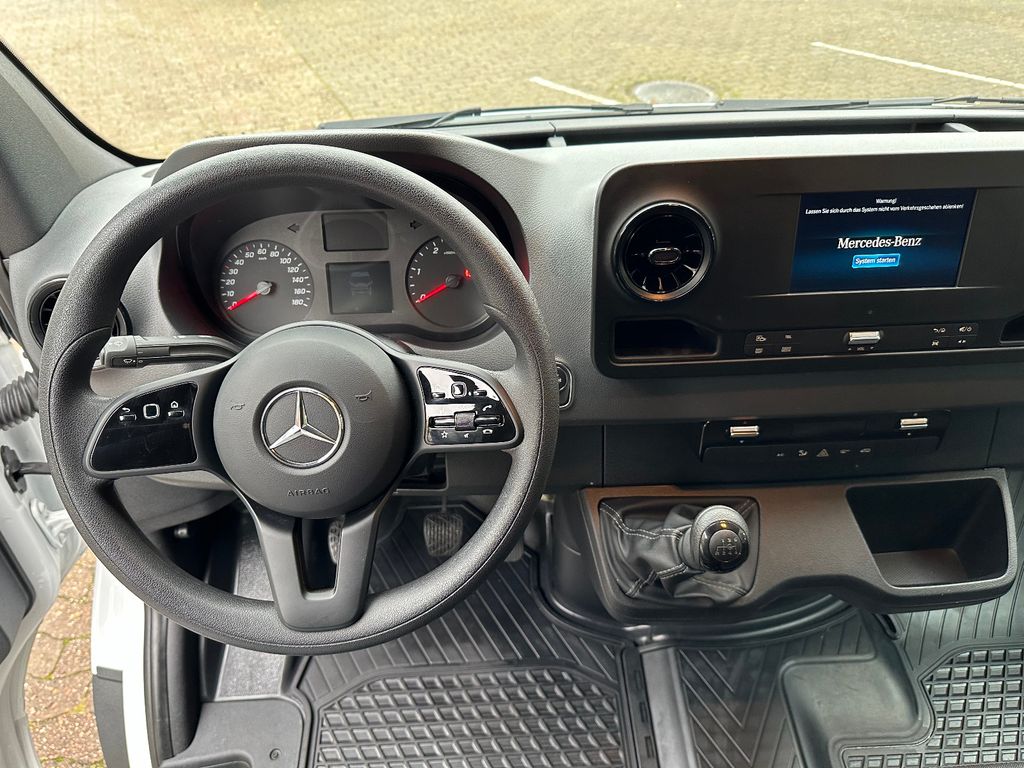 3. Bremsleuchte, Ablagefach oberhalb Frontscheibe, Ablagefach unterhalb Armaturentafel Beifahrerseite, Adaptives Bremslicht, Airbag Fahrerseite, Antriebs-Schlupfregelung (ASR), Anzeige für Waschwasserstand, Außenspiegel elektr. verstell- und heizbar, beide, Außentemperaturanzeige, Bremsassistent, Einschaltautomatik für Fahrlicht, Einstiegsgriff für Schiebetür an Laderaumtrennwand, Elektr. Bremskraftverteilung (EBV), Fahrassistenz-System: Pannenmanagement, Fahrassistenz-System: Seitenwind-Assistent, Fahrwerk: Stabilisierung Stufe I, Geräuschmaßnahme außen, Hecktür (Öffnungswinkel 270 Grad), Karosserie/Aufbau: Kasten Hochraum, Keyless-Start, Kindersicherung, Kommunikationsmodul (LTE) für digitale Dienste, Kraftstofftank: Haupttank 71 Ltr., Laderaumtrennwand durchgehend, Lenkrad (Lenksäule mech. verstellbar), Leuchtweitenregelung, LKW-Zulassung, Markierungsleuchten seitlich, Mercedes-Benz Notrufsystem, Motor 2,0 Ltr. - 110 kW CDI KAT, Radstand 4325 mm, Schadstoffarm nach Abgasnorm Euro 6d, Schiebetür Lade-/Fahrgastraum rechts, SCR-System (AdBlue-Technologie), Sicherheitsgurt-System mit Warnanlage (Beifahrerseite), Sicherheitsgurt-System mit Warnanlage (Fahrerseite), Sitzbezug / Polsterung: Stoff, Sitze im Fahrerhaus: Fahrersitz verstellbar, Stahlfelgen 6,5x16, Start/Stop-Anlage Motor, Vlies-Batterie 92 Ah, Wartungsintervall-Anzeige Assyst, Wärmeschutzverglasung, Zul. Gesamtgewicht 3,50 t