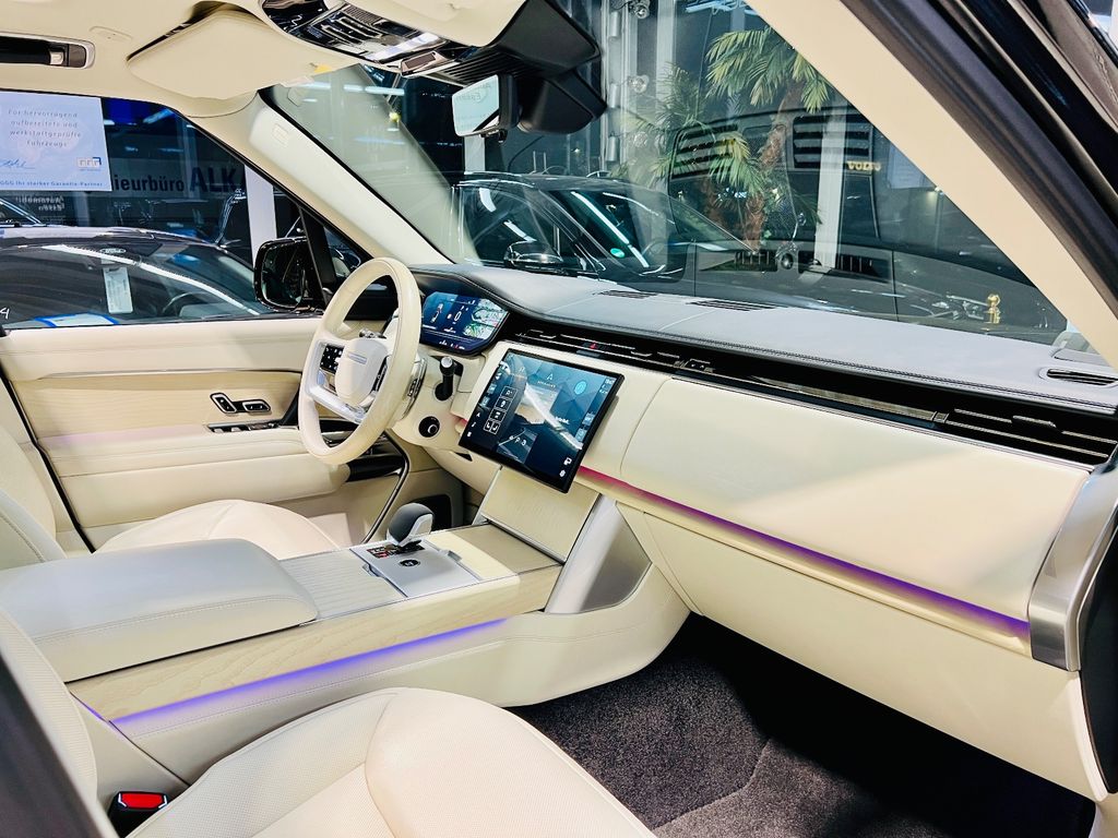 3. Bremsleuchte, Adaptive Geschwindigkeitsregelanlage (ACC) mit Lenk-Assistent, Adaptive Geschwindigkeitsregelanlage (ACC) mit Stop&Go-Funktion und Lenkassistent, Aktive Sicherheitsgurte, Allradlenkung, Allwetter-/ Ganzjahresreifen, Ambiente-Beleuchtung, Anhänger-Stabilisierungs-Programm, Antriebsstrangtrennung Vorderachse, Audiosystem: Meridian Sound-System (1600 Watt, 35 Lautsprecher, Subwoofer), Automatische Einstiegsabsenkung, Außenspiegel elektr. verstell-, heiz- und anklappbar, mit Abblendautomatik und Umfeldleuchte, Außenspiegel mit Warnsystem Totwinkel, Blinkleuchten mit Lauflicht, Blinkleuchten mit Lauflicht vorn, Bluetooth-Schnittstelle, Bremssättel schwarz lackiert, Dach Wagenfarbe, Dachhimmel SV Bespoke Build Leder zweifarbig, Digital LED-Scheinwerfer mit LED-Signatur und Bildprojektoren, Einparkhilfe vorn und hinten, Einschaltautomatik für Fahrlicht, Einstiegsleisten mit Schriftzug beleuchtet, Elektr. Bremskraftverteilung, Fahrassistenz-System: Adaptive Fahrwerksregelung (Adaptive Dynamics), Fahrassistenz-System: All-Terrain Progress Control Pro (ATPC), Fahrassistenz-System: Anfahrhilfe (Low Traktion Launch), Fahrassistenz-System: Antriebsmomentkontrolle (Torque Vectoring), Fahrassistenz-System: Aufmerksamkeits-Assistent, erweitert (DCR), Fahrassistenz-System: Autonomer Notbrems-Assistent, Fahrassistenz-System: Bergabfahrkontrolle (HDC), Fahrassistenz-System: Berganfahr-Assistent, Fahrassistenz-System: Fernlichtassistent (Intelligent Light System), Fahrassistenz-System: Kollisionswarnsystem Heck (Rückfahr-Assistent / Querverkehrs-Assistent), Fahrassistenz-System: Kollisionswarnsystem hinten, Fahrassistenz-System: Off-Road-Fahrprogramm, Fahrassistenz-System: Park-Assistent, Fahrassistenz-System: Spurhalteassistent (Lane Departure Warning), Fahrassistenz-System: Tiefenmessung bei Wasserdurchfahrten (Wade Sensing), Fahrassistenz-System: Totwinkel-Assistent mit Spurhalteassistent, Fahrassistenz-System: Verkehrszeichenerkennung (Traffic Sign Recognition), Fahrassistenz-System: Verkehrszeichenerkennung mit Adaptiver Geschwindigkeits-Begrenzeranlage, Frontscheibe Akustikglas, Frontscheibe wärmeabweisend, Gepäck-/Laderaumboden variabel, Gurtschlösser, beleuchtet, Head-up-Display, Heckklappe/-Deckel elektr. betätigt (öffnen + schliessen, sensorgesteuert), Heckleuchten LED, Heckscheibe heizbar, Heckscheibenwischer, InControl Remote Premium (Onlinedienste / Apps), InControl Wi-Fi (WLAN-Hotspot), Infotainment-System: Pivi Pro, Innenausstattung: Dekoreinlagen SV Bespoke Build Natural Brown Walnut mit Intarsien, Innenausstattung: Designelemente Noble Chrome, Innenausstattung: Interieur Ebony, Innenspiegel, digital (Smart View Mirror), Insassen-Schutzsystem proaktiv, Instrumentenanzeige TFT-Farbdisplay (13,7 Zoll), Ionisator zur Luftreinigung Pro mit 2.5 PM Filter, Isofix-Aufnahmen für Kindersitz, Karosserie: 5-türig, Klimaautomatik 4-Zonen, Kurvenbremskontrolle (Corner-Brake-Control, CBC), Kühlerjalousie, regelbar (Airpanel), Laderaumabdeckung, Leder-Paket, Erweiterte Ausstattung, SV Bespoke Build, Lenkrad heizbar, Lenksäule (Lenkrad) elektr. verstellbar, Luftqualitätssensor, Mobiltelefon Schnittstelle mit kabelloser Ladefunktion, mit Signalverstärker, Motor 3,0 Ltr. - 258 kW Turbodiesel Mild-Hybrid, Nebelschlussleuchten (2), Panorama-Schiebedach elektrisch, Parkbremse elektrisch, Pedale Edelstahl-Design, Radioempfang digital (DAB+), Radstand 3197 mm, Reifen-Reparaturkit, Reifendruck-Kontrollsystem, Schadstoffarm nach Abgasnorm Euro 6d, Scheibenwaschdüsen heizbar, Seitenscheiben hinten Verbundglas, Seitenscheiben vorn Verbundglas, Service-System: Amazon Alexa, Servolenkung elektro-mechanisch, Sitzbezug / Polsterung: Leder Semianilin perforiert (Ebony), Sitze vorn elektr. verstellbar (24-fach, mit Memory und Massagefunktion) klimatisiert und heizbar, Smartphone kabellose Schnittstelle (Apple CarPlay & Android Auto), Soft-Close-Automatik für Türen, Sonnenblende rechts mit Spiegel, zweiteilig (beleuchtet), Sonnenblenden an Seitenscheiben hinten, elektrisch, Sperrdifferential (Hinterachse), Sprachsteuerung System, Start-Stop-Knopf (Start/Stop-Anlage ohne Schlüssel), Start/Stop-Anlage, Surround-Kamerasystem, Teppich-Fußmatten Premium, Teppichboden (Ebony), Terrain-Response-System 2, Touchscreen-Farbdisplay (13,1 Zoll), Traktionskontrolle, Türgriffe außen ausfahrbar / versenkbar, USB-Anschluss in Mittelkonsole, USB-Anschluss Mittelkonsole hinten, Verteilergetriebe zweistufig (Untersetzungsgetriebe), Wankneigungskontrolle (Roll Stability Control, RSC)