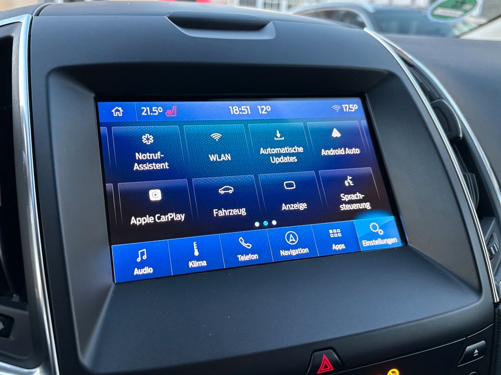 Entdecken Sie diesen gepflegten Ford S-Max aus dem Jahr 2018 mit nur zwei Vorbesitzern. Der zuverlässige Diesel-Van mit Frontantrieb und Automatikgetriebe bietet mit seinen 190 PS ein komfortables Fahrerlebnis für die ganze Familie. Die graue Metallic-Lackierung verleiht dem Fahrzeug eine elegante Optik, während der schwarze Stoffinnenraum Komfort und Langlebigkeit verspricht.Dieser S-Max überzeugt mit umfangreicher Ausstattung: Die 2-Zonen-Klimaautomatik sorgt für angenehmes Raumklima, während das Navigationssystem mit Touchscreen, Apple CarPlay und Android Auto für beste Konnektivität steht. Die LED-Scheinwerfer mit Kurvenlichtfunktion und Fernlichtassistent bieten optimale Sicht. Für Sicherheit sorgen zahlreiche Assistenzsysteme wie Spurhalteassistent, Müdigkeitserkennung und Kollisionsvermeidung.