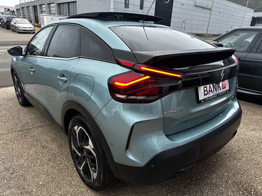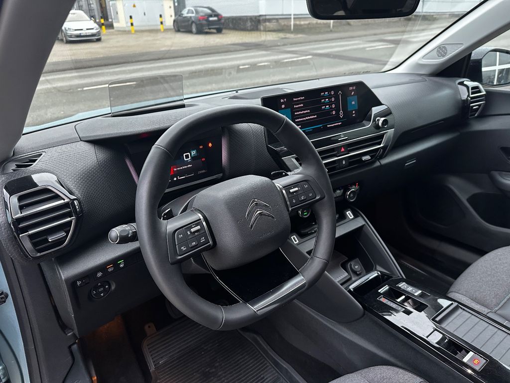 Dieser gepflegte Citroën C4 aus dem Jahr 2022 präsentiert sich in elegantem Blau mit Metallic-Lackierung. Mit nur einem Vorbesitzer und voller Servicehistorie bietet dieses SUV eine beeindruckende Ausstattung für anspruchsvolle Fahrer. Der 131 PS starke Dieselmotor mit 1499 ccm Hubraum sorgt für kraftvolle Fahrleistungen bei gleichzeitig effizienter Kraftstoffnutzung. Das Automatikgetriebe und der Frontantrieb garantieren ein komfortables Fahrerlebnis.Die Innenausstattung mit Teilleder in Grau bietet Platz für fünf Personen und überzeugt durch zahlreiche Komfortmerkmale. Das digitale Cockpit mit Touchscreen, Navigationssystem und Head-up-Display erleichtert die Bedienung. Die Automatik-Klimaanlage, beheizte Sitze und das beheizte Lenkrad sorgen für angenehmes Klima bei jeder Fahrt. Dank Apple CarPlay und Android Auto bleibt man stets vernetzt.