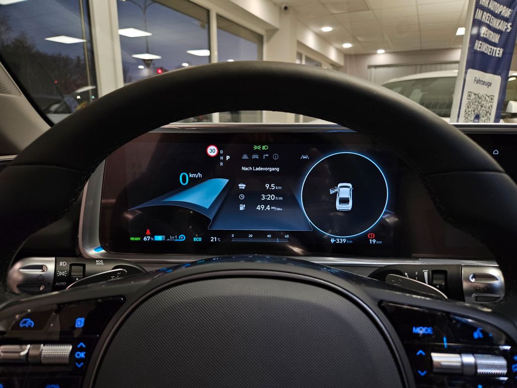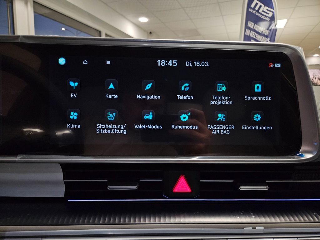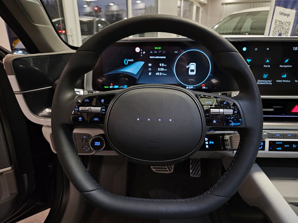 Weitere Ausstattung:Ablagebox / Stauraum unter Kofferraumboden, Ablagetasche an Vordersitzlehnen, Airbag Beifahrerseite, Airbag Beifahrerseite abschaltbar, Airbag Fahrerseite, Ambiente-Beleuchtung einstellbar, Anhängerkupplung Vorbereitung, Antriebsart: Allradantrieb, Audio-Navigationssystem, Außenspiegel elektr. anklappbar, Außenspiegel elektr. verstell- und heizbar, beide, Außenspiegel Oberschale Wagenfarbe, Außenspiegel Unterschale schwarz lackiert (Hochglanz), Batterieheizsystem, Blinkleuchten LED in Außenspiegel integriert, BOSE-Paket, Dachspoiler, Einschaltautomatik für Fahrlicht / Lichtsensor, Elektr. Bremskraftverteilung, Elektromotor 239 kW (cont. 81 kW, Dual-Elektromotor), Elektron. Stabilitätskontrolle (ESC) mit Bremsassistent, Fahrassistenz-System: aktiver Spurhalteassistent (LKAS, Lane Keep Assist System), Fahrassistenz-System: aktiver Totwinkel-Assistent, Fahrassistenz-System: Aufmerksamkeits-Assistent, Fahrassistenz-System: Ausstiegswarnung, Fahrassistenz-System: Autobahnassistent 2.0 (Highway Driving Assist, HDA 2.0), Fahrassistenz-System: Autonome Notbremsfunktion inkl. Frontkollisionswarnung (FCA), Fahrassistenz-System: Berganfahrhilfe, Fahrassistenz-System: Fahrprofilauswahl (Drive Mode), Fahrassistenz-System: Fernlichtassistent, Fahrassistenz-System: Insassenalarm (ROA), Fahrassistenz-System: Multikollisionsbremse (Multi Collision Brake), Fahrassistenz-System: Querverkehrs-Assistent Heck (Cross Traffic), Fahrassistenz-System: Sicherheitssystem mit automatischem Notruf (ERA GLONASS / eCall), Fahrassistenz-System: Spurfolgeassistent (Lane Following Assist, LFA), Fahrassistenz-System: Verkehrszeichenerkennung, erweitert (Geschwindigkeits-Regel-/Begrenzeranlage), Fensterheber elektrisch vorn und hinten, mit Auf-/Ab-Automatik, Fensterrahmen Zierleisten schwarz glänzend, Freisprecheinrichtung Bluetooth, Frontscheibe Verbundglas, Frontschürze, Heckschürze und Seitenschutzleisten in Kontrastfarbe, Frontstaufach / Frunk (Kofferraum, vorn), Getriebe für Elektrofahrzeug, Getränkehalter hinten, Getränkehalter vorn, Gurtstraffer, Head-up-Display, Heckklappe/-Deckel elektr. betätigt (Öffnung, sensorgesteuert), Heckleuchten LED (Pixel-Design), Heckscheibe heizbar, HV-Batterie 77,4 kWh (Lithium-Ionen), Induktionsladeschale für Smartphone, Innenspiegel mit Abblendautomatik, Instrumentenanzeige Farbdisplay 12,25 Zoll, Isofix-Aufnahmen für Kindersitz, Karosserie: 4-türig, Klimaautomatik 2-Zonen, Kopf-Airbag-System, Kopfstützen hinten verstellbar, Ladekabel mit Typ 2-Stecker, Ladevorrichtung On-Board-Lader (3-Phasen), LED-Pixel am Lenkrad (interaktiv), Lendenwirbelstütze Sitz vorn links, elektr. verstellbar, Lendenwirbelstütze Sitz vorn rechts, elektr. verstellbar, Lenkrad mit Schaltwippen, Lenksäule (Lenkrad) höhenverstellbar, Lenksäule (Lenkrad) längsverstellbar, Leseleuchten vorn und hinten LED, Lifetime MapCare (Internetbasierende Dienste), LM-Felgen, Luftdüsen hinten, Matrix-LED-Scheinwerfer, Mittelarmlehne hinten, Navigationsbasierte Adaptive Geschwindigkeitsregelanlage (Tempomat) mit Abstandsregelung (NSCC), Nebelschlussleuchte LED, Notladekabel (ICCB), Park-Paket, Parkbremse elektrisch (EPB), Pedale Aluminium, Radioempfang digital (DAB+), Reifen-Reparaturkit, Reifendruck-Kontrollsystem, Rückfahrkamera, Rücksitzlehne geteilt/klappbar, Rücksitzlehne umklappbar mit Fernentriegelung im Kofferraum, Schalt-/Wählhebel (Shift by Wire), Scheibenbeschlagerkennung / Regelung, Seitenairbag vorn, Seitenairbag vorn mitte (Central Airbag), Service-System: Online Update OTA (Over The Air), Service-System: Remote Services (Blue Link), Sicherheitsgurte vorn höhenverstellbar, Sitz vorn links elektr. verstellbar, Sitz vorn links höhenverstellbar, Sitz vorn rechts elektr. verstellbar, Sitz vorn rechts höhenverstellbar, Sitz-Paket, Sitzheizung vorn, Smartphone Schnittstelle (Apple CarPlay & Android Auto), Sonderlackierung Byte Blue Uni, Sonnenblenden mit Spiegel, Start-Stop-Knopf, Steckdose (12V-Anschluß) 2.Sitzreihe, Steckdose (12V-Anschluß) vorn, Türgriffe außen ausfahrbar / versenkbar, elektrisch, Türgriffe außen Wagenfarbe, Uniq-Paket, USB-Anschluss (Typ C, 2-fach), USB-Anschluss Mittelkonsole, USB-Ladeanschlüsse (2-fach, Typ C) für 2.Sitzreihe, Vehicle-to-Load Stecker (V2L), Verglasung getönt, Verglasung hinten abgedunkelt (Privacy Glass), Vorheizsystem für Batterie, Warnanlage für Sicherheitsgurte, Fahrer-/Beifahrerseite, Wärmepumpe für Heizungs-/Klimaanlage